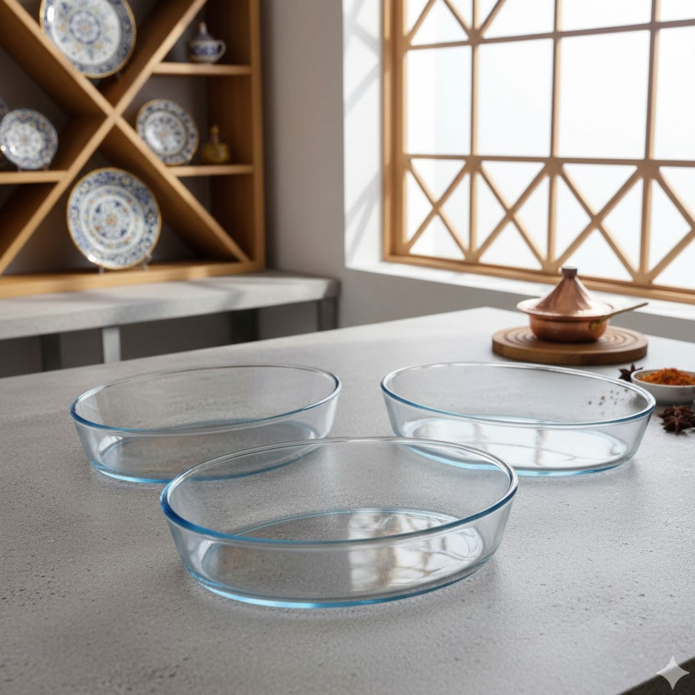 صواني خبز بيضاوية من زجاج البوروسيليكات عالي الجودة، مقاومة للحرارة. مثالية لطهي جميع أطباقك المفضلة. تتميز بمقاومة عالية للحرارة العالية والعوامل الكيميائية. مصنوعة من مواد فاخرة وعالية الجودة.