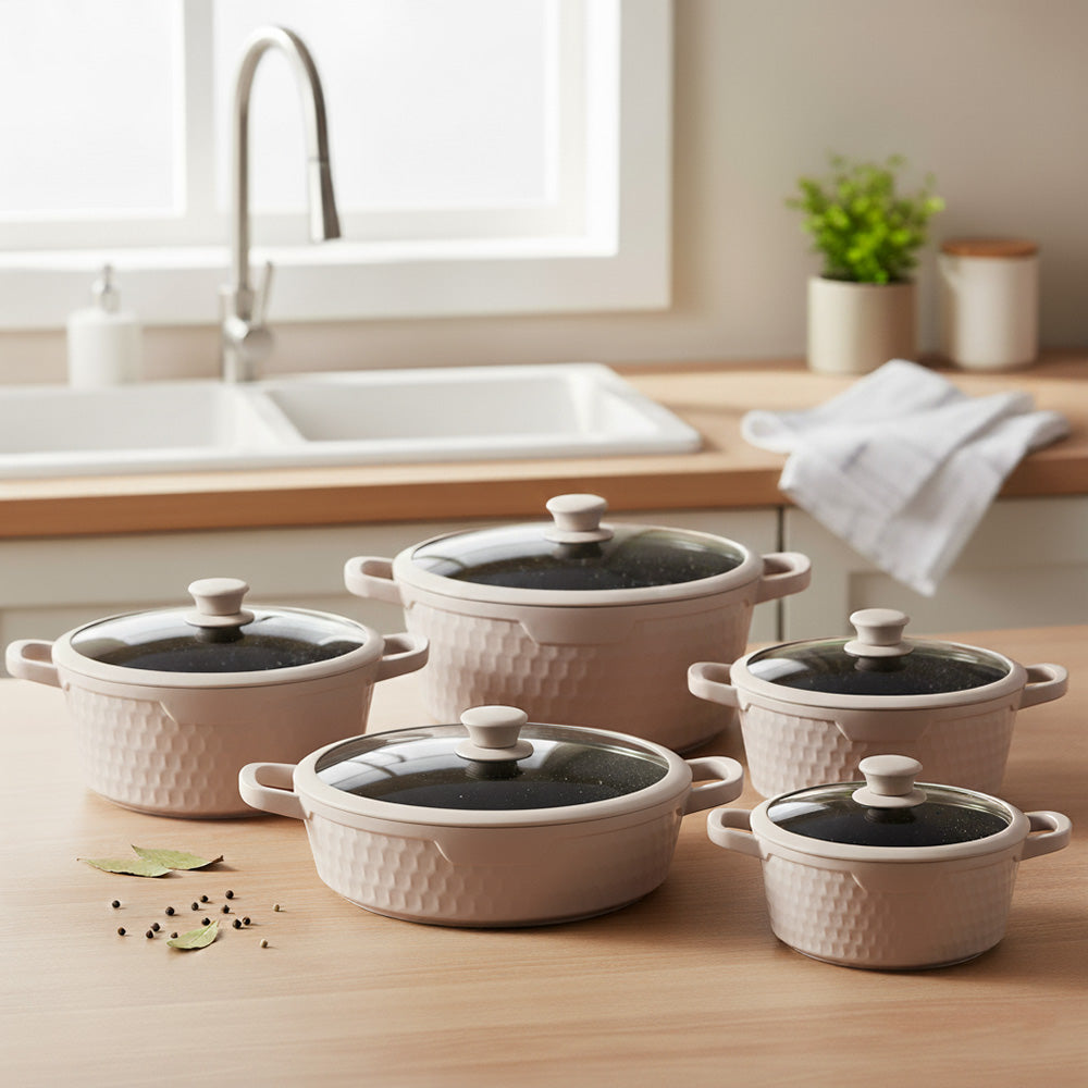 طقم طاجن وأواني طهي جرانيتية غير لاصقة 5 قطع