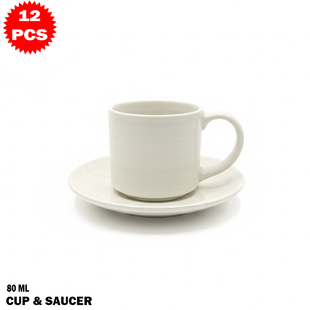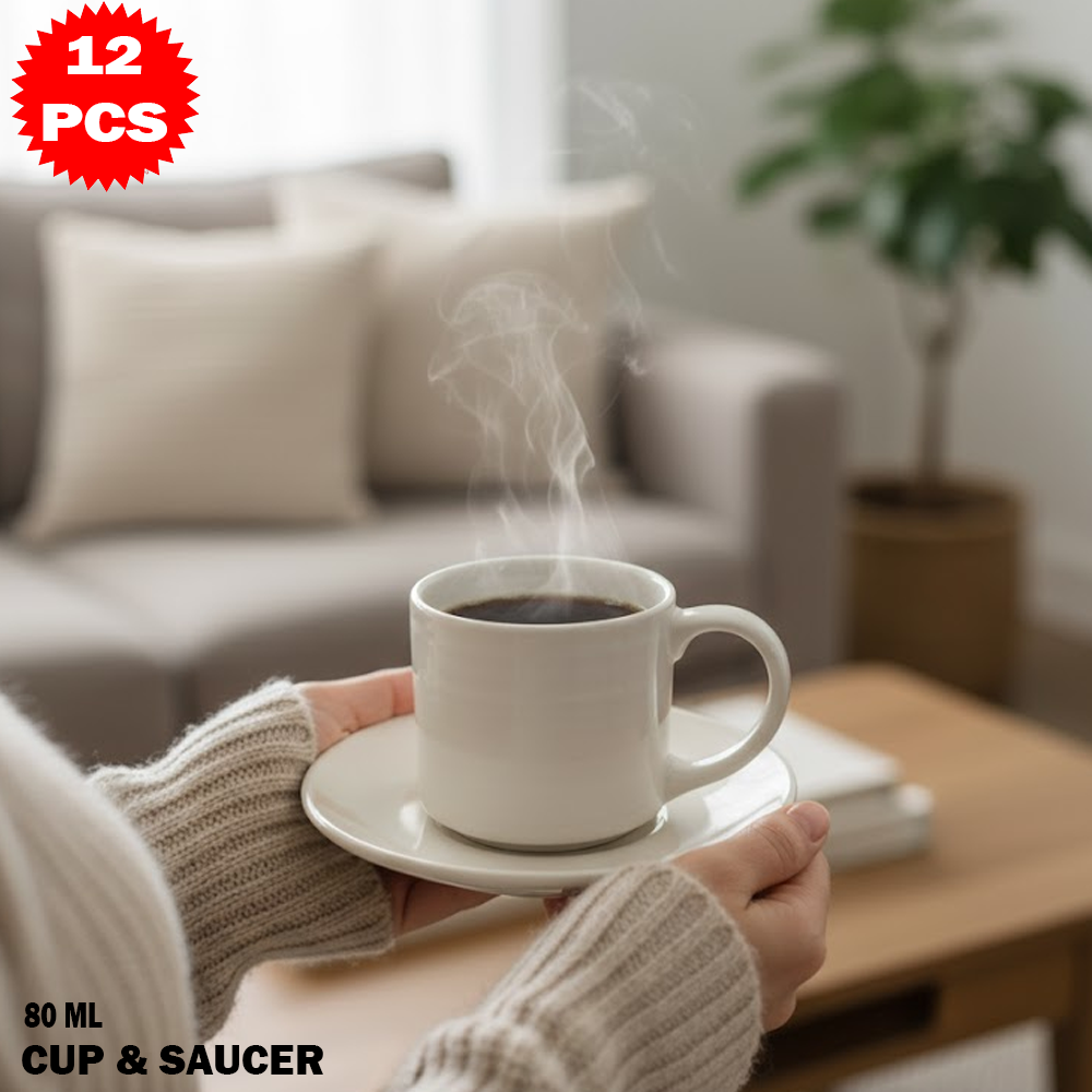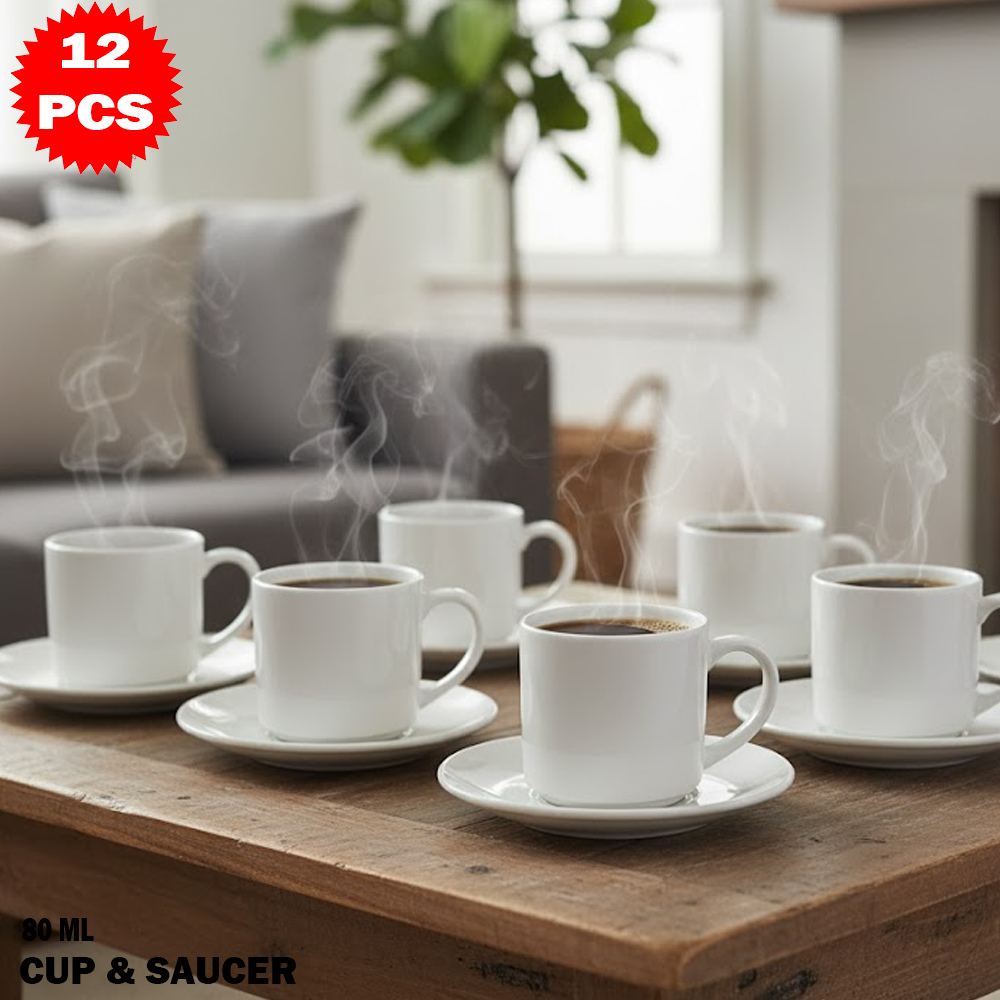 أضف لمسة من البساطة والفخامة إلى طاولتك مع طقم فناجين القهوة الأبيض من السيراميك بسعة 80 مل. يتميز الطقم بتصميمه الكلاسيكي الأنيق الذي يجمع بين النعومة والبساطة ليمنح تجربة تقديم مثالية للقهوة أو الإسبريسو.