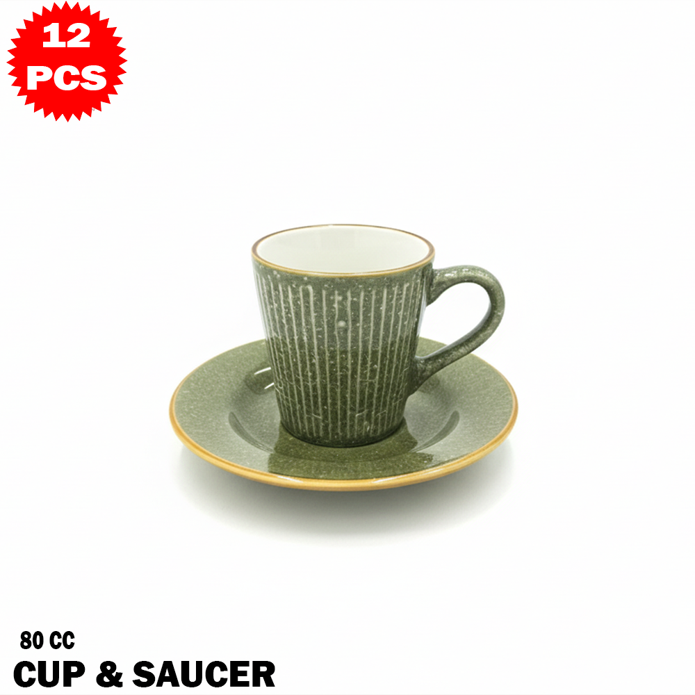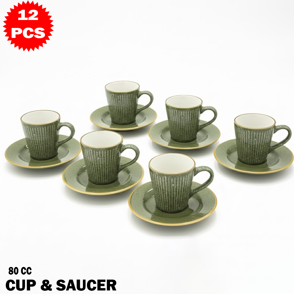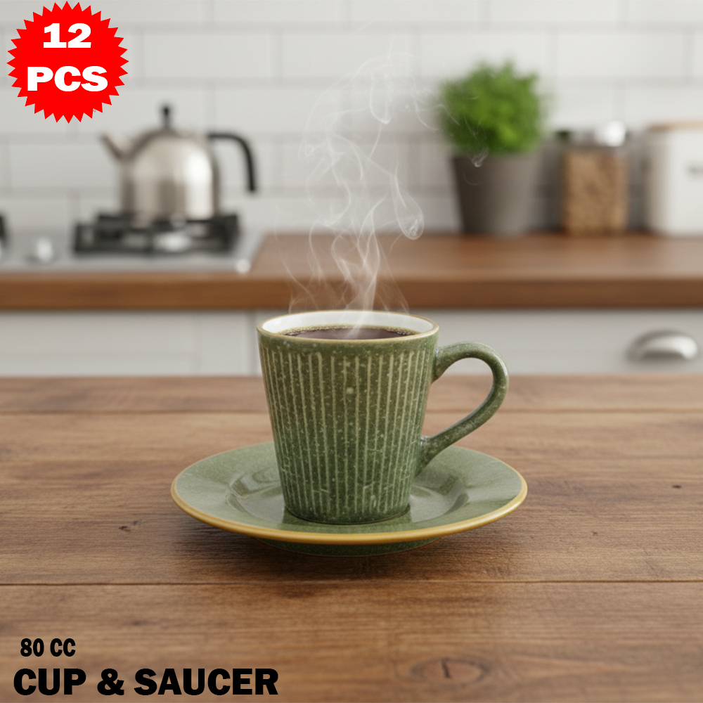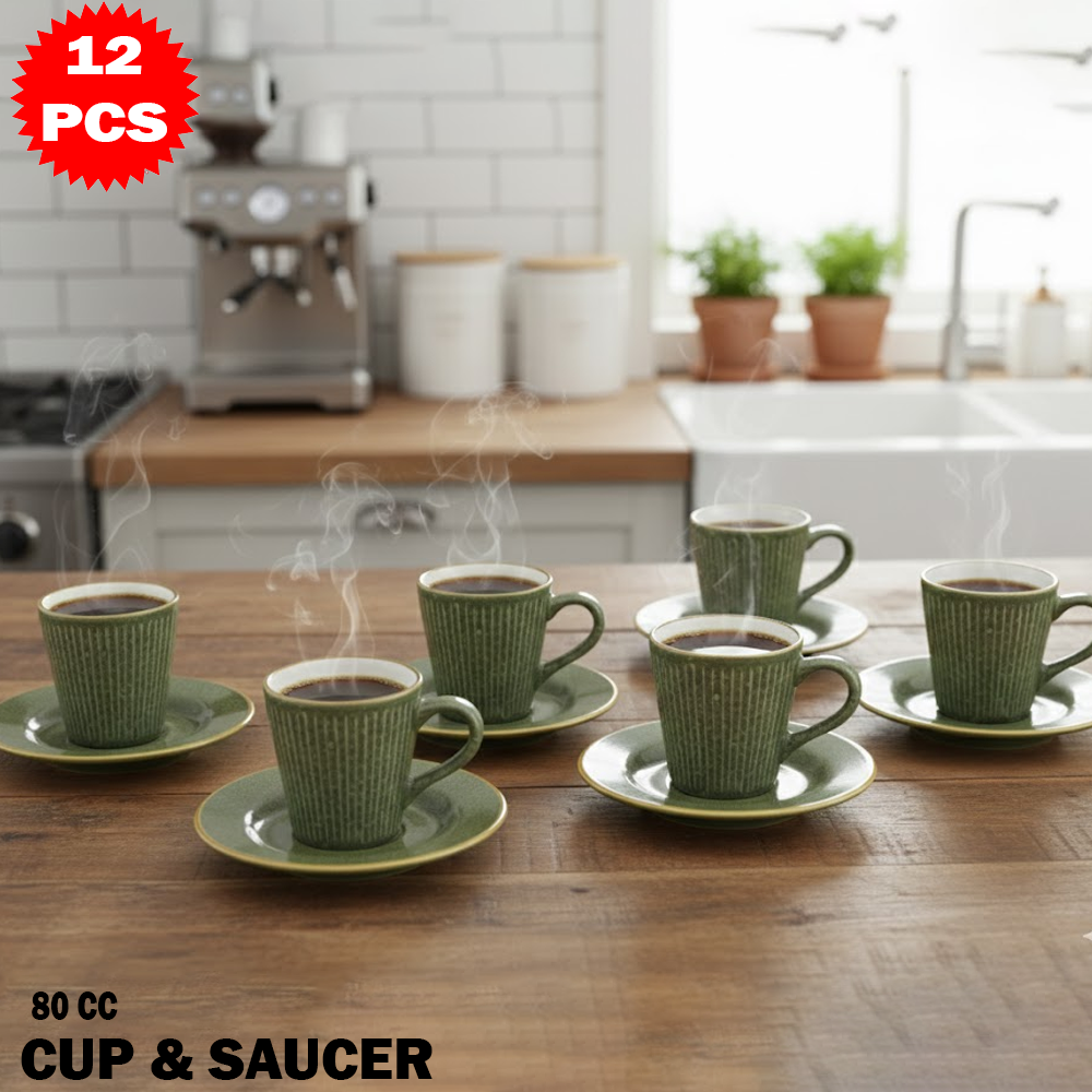 استمتع بأجواء الضيافة الأنيقة مع هذا الطقم الفاخر من الفناجين والصحون بلونه الأخضر الهادئ وتصميمه العصري.