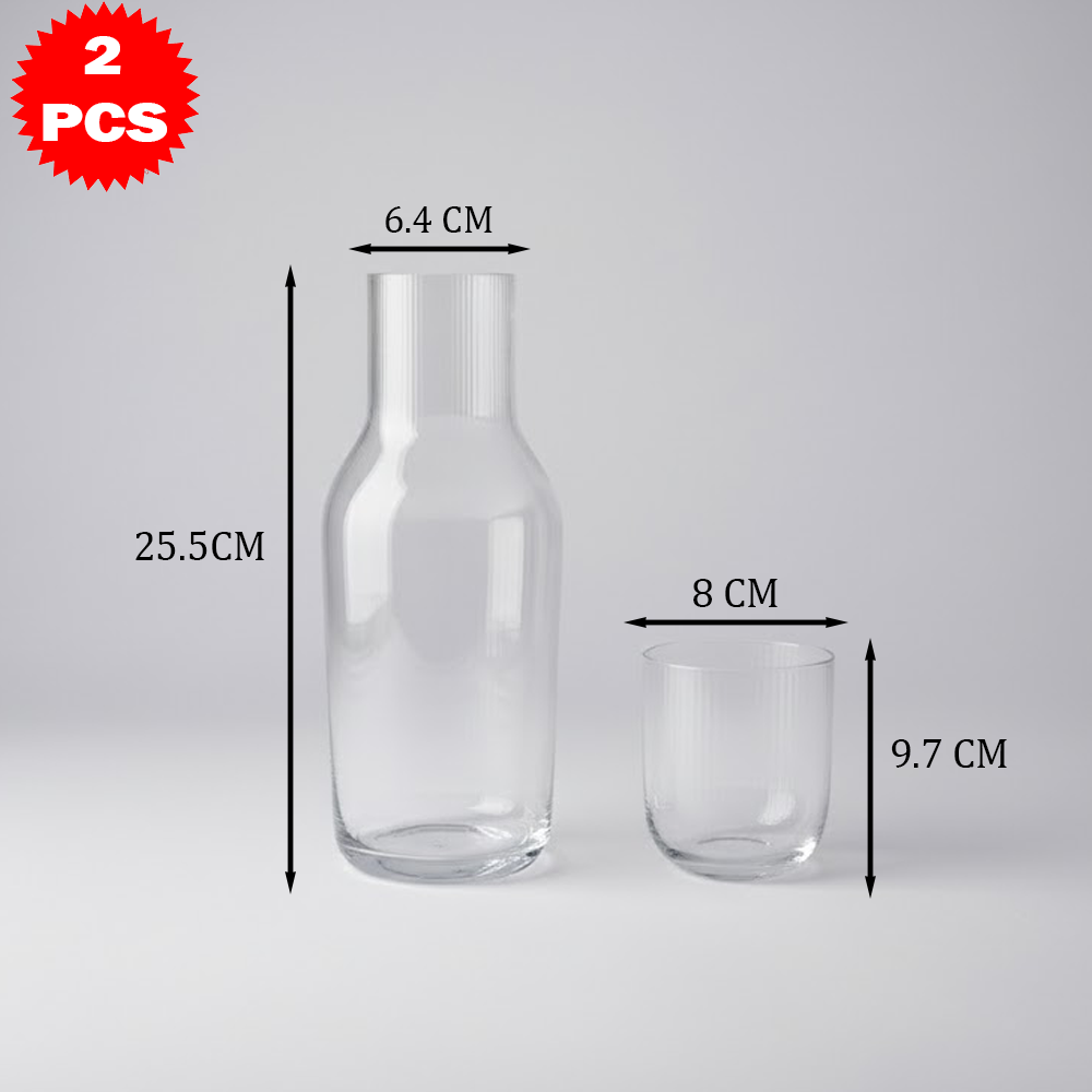 مصنوع من زجاج شفاف عالي الجودة بتصميم مميز بخطوط طولية تضيف لمسة فخمة إلى أي مطبخ أو طاولة ضيافة.