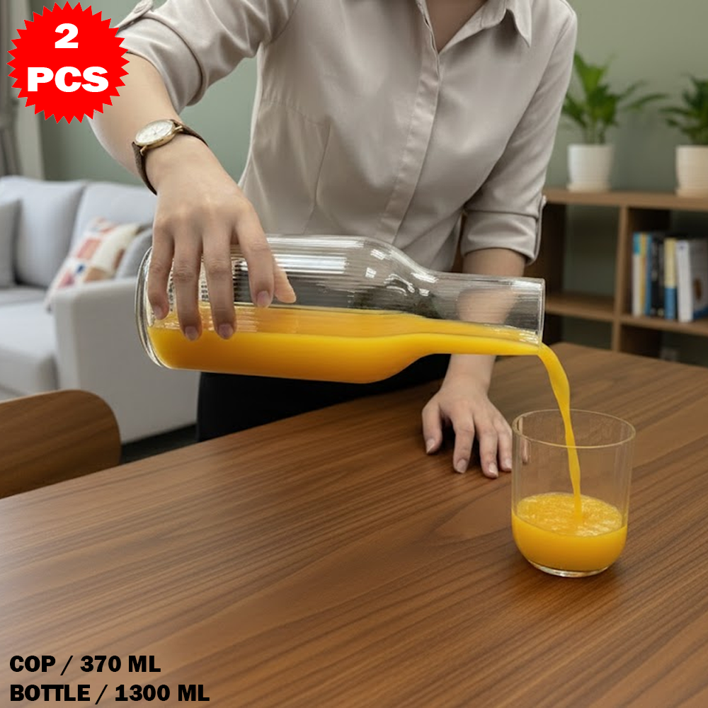احصل على لمسة من الأناقة العملية مع طقم القارورة والكوب الزجاجي من Danny Home المكوّن من قارورة سعة 1300 مل وكوب سعة 370 مل.