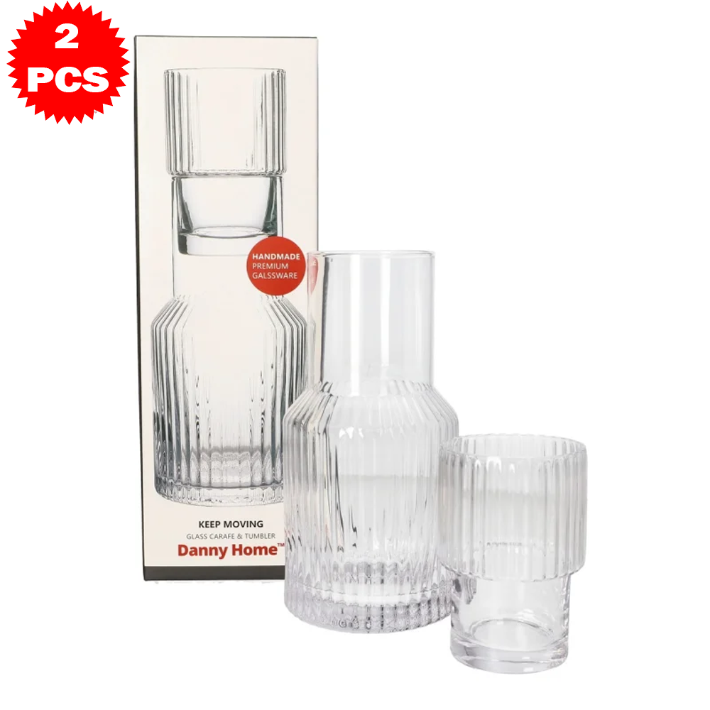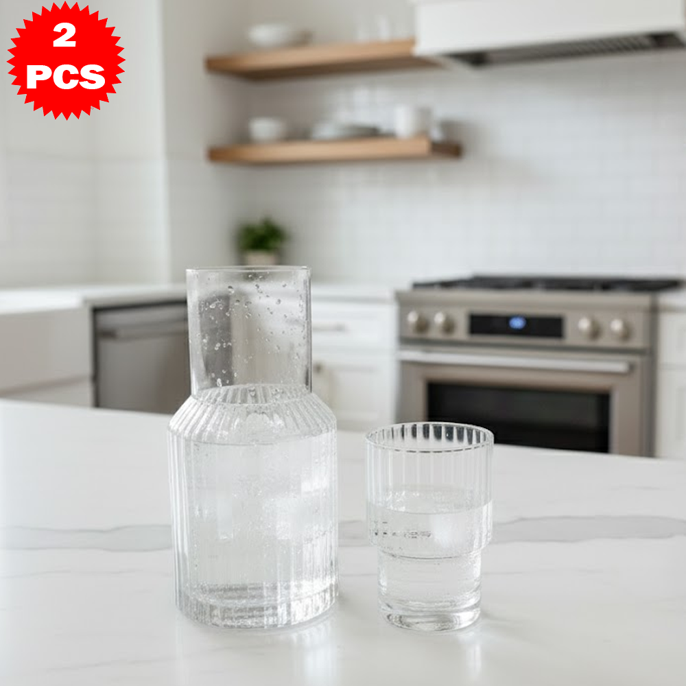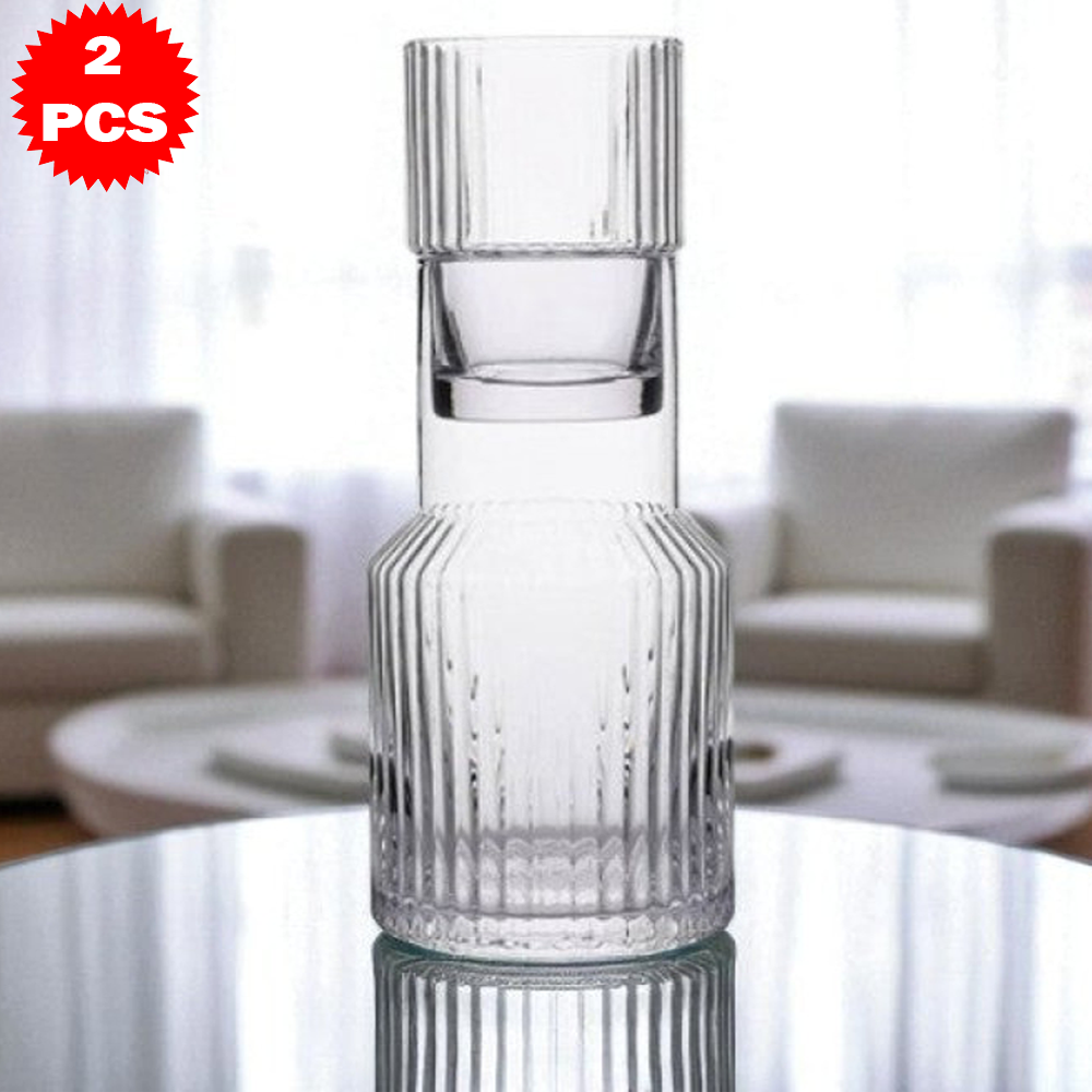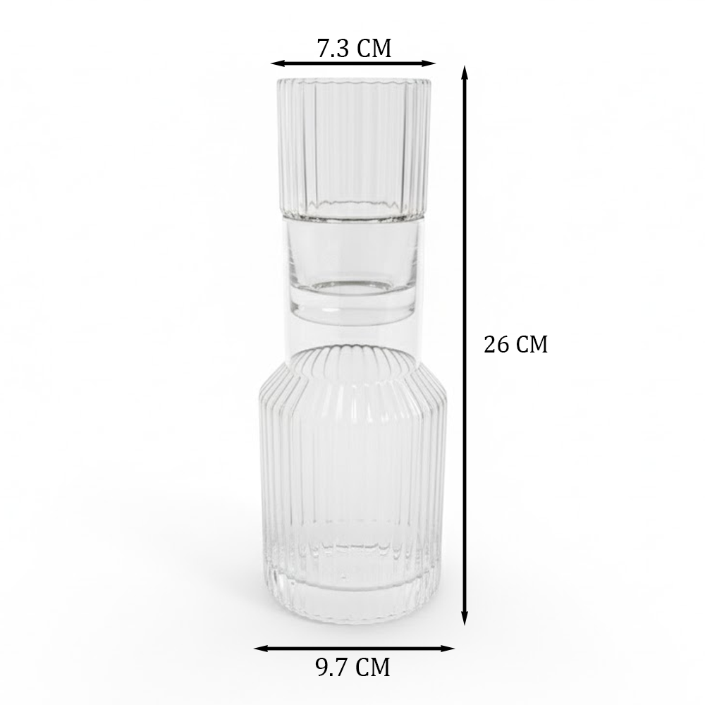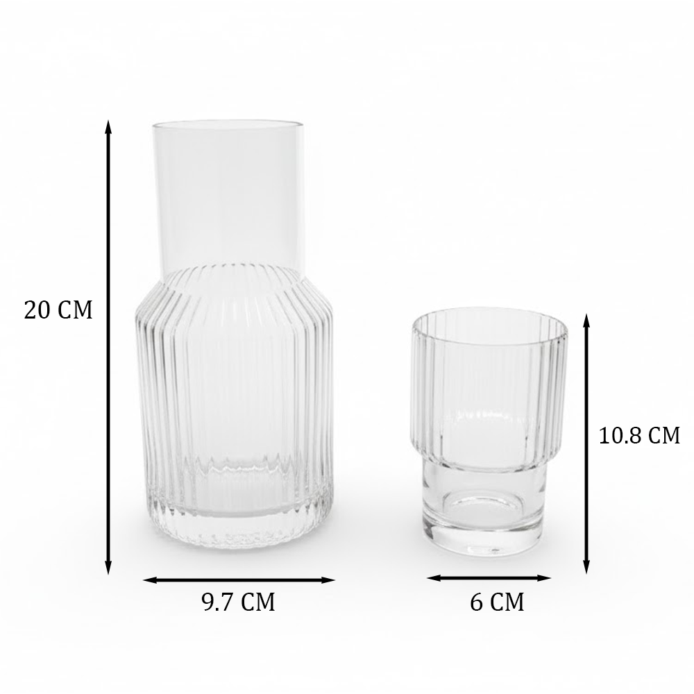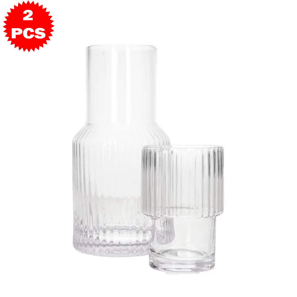 طقم قارورة وكوب زجاجي محزز