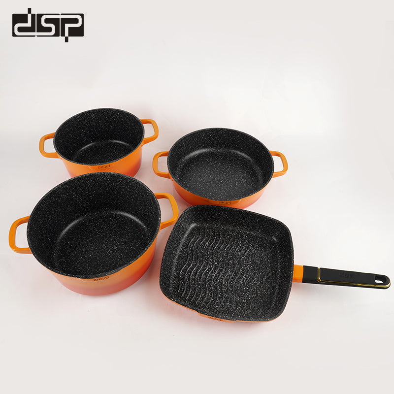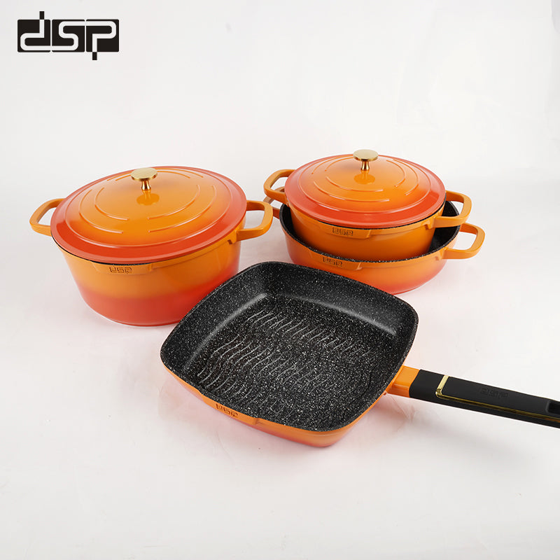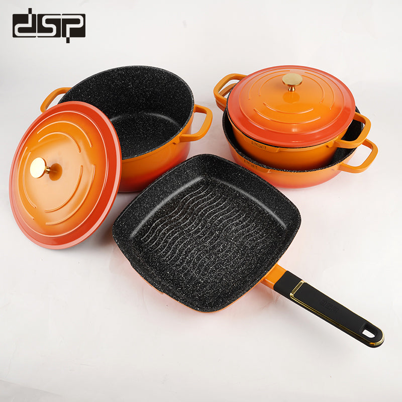 طقم قدور جرانيت مع ملاعق طبخ و قفاز فرن و مريول - 11 قطعة برتقالي DSP CA013