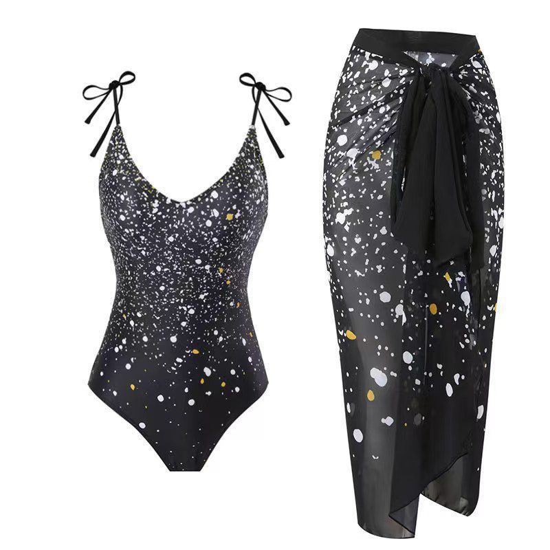 تألقي بإطلالة مميزة على الشاطئ مع طقم السباحة النسائي المصمم بذوق رفيع، والذي يتكوّن من بنطال ضيق مريح وكاش طويل شفاف بنقشة فنية جذابة. يتميز بقصة أنثوية أنيقة مع ربطة جانبية تضيف لمسة من الرقي، كما يوفر تغطية مثالية وحركة حرة لراحة كاملة أثناء السباحة أو المشي على الشاطئ.