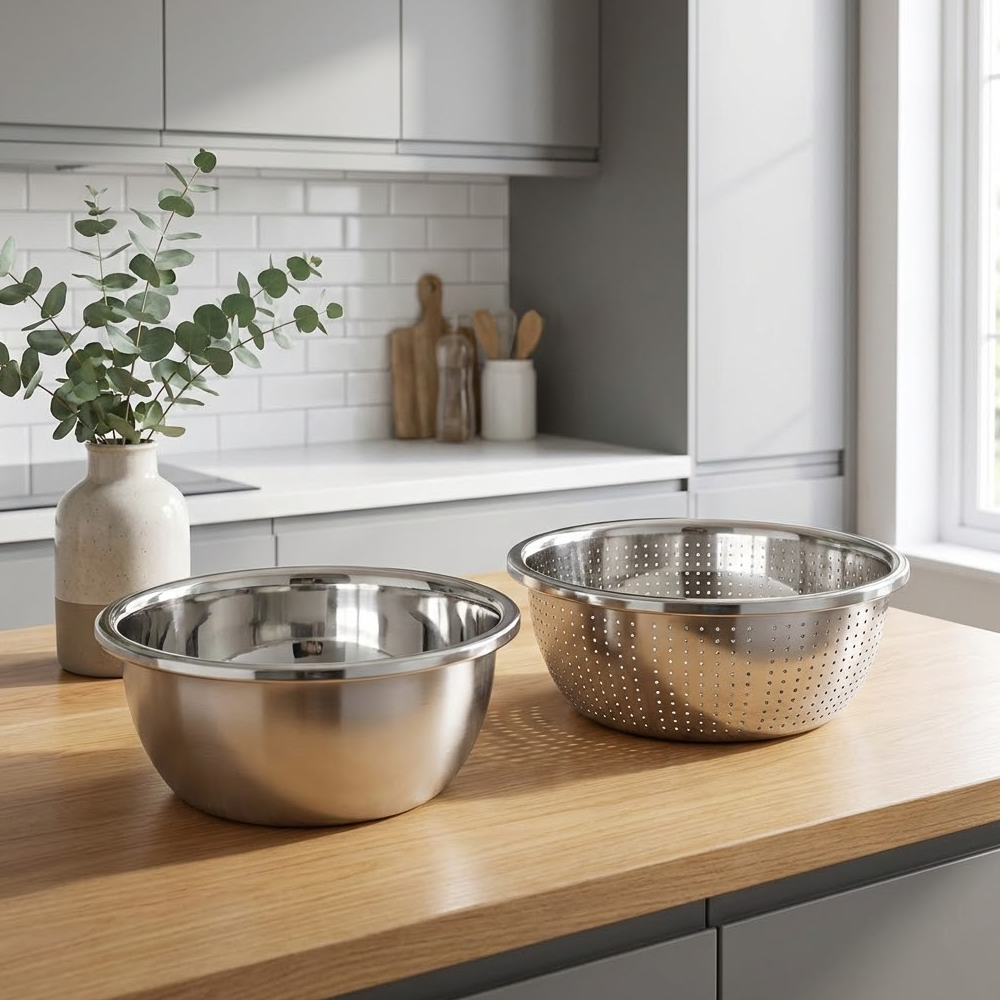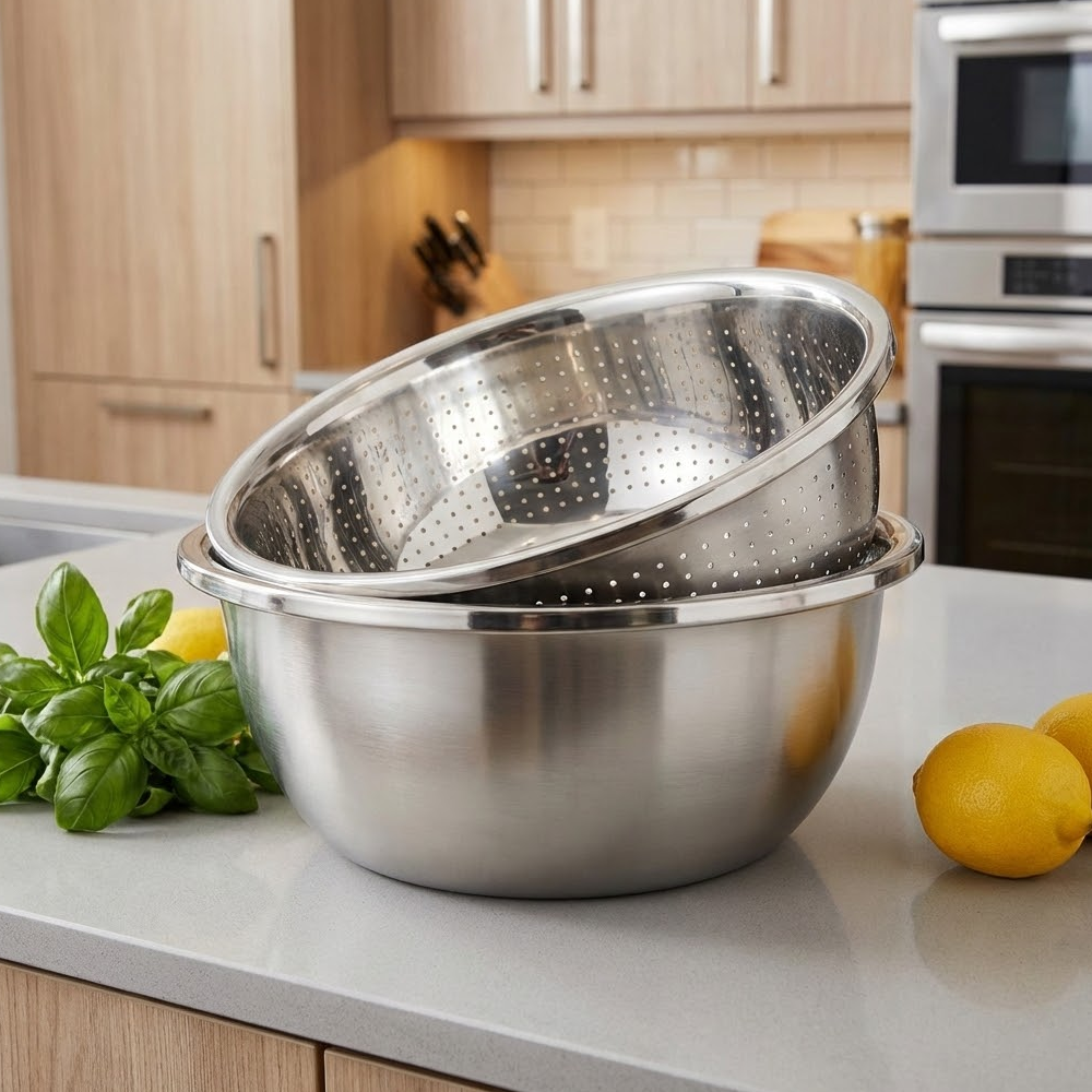 استمتع بتجربة مطبخ أسهل وأكثر تنظيمًا مع طقم الوعاء والمصفاة المصنوع من الستانلس ستيل عالي الجودة.