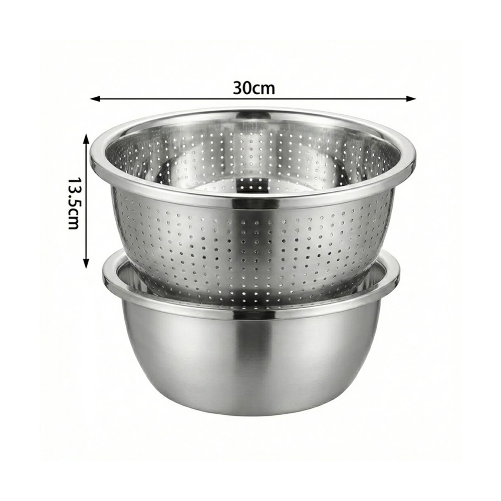 طقم مصفاة ووعاء ستانلس ستيل
