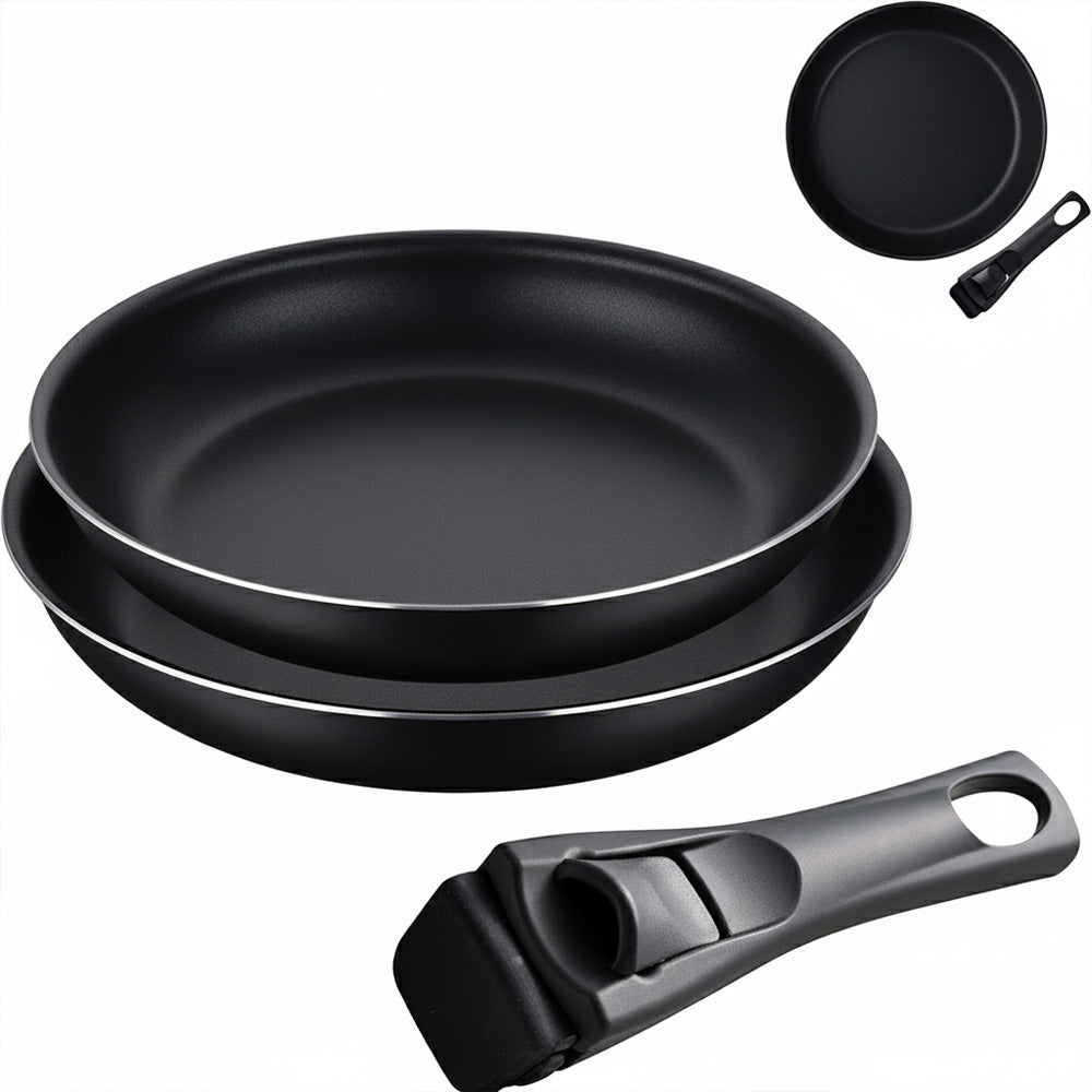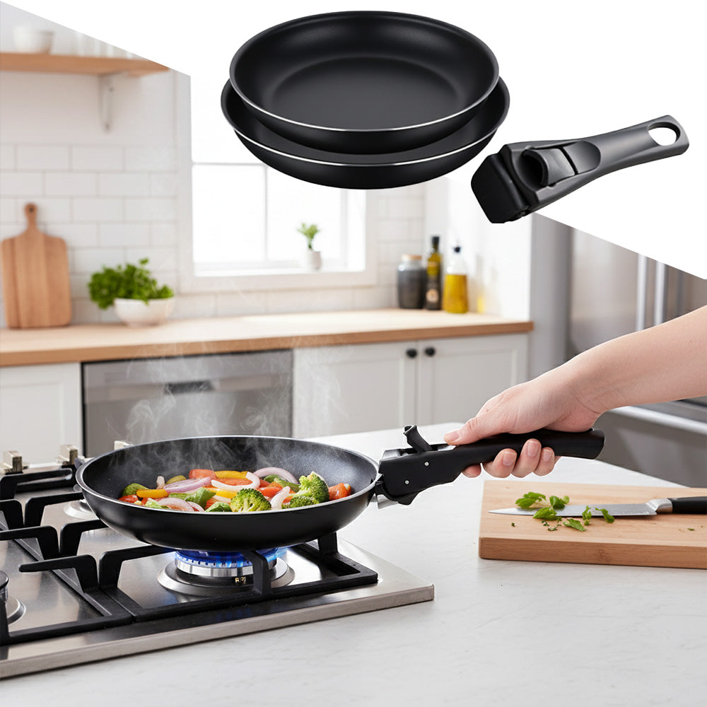توفر لك كل ما تحتاجه لطهي فعال وأنيق. تتميز كل مقلاة بطبقة متينة غير لاصقة، مما يضمن سهولة إخراج الطعام وتنظيفه بسرعة. يتيح المقبض القابل للفصل تخزينًا مدمجًا ونقلًا سهلًا من الموقد إلى الفرن.