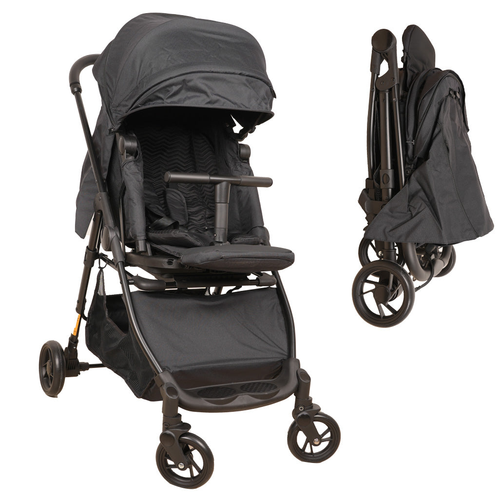 تأتي مع ميزة الفرامل الخلفية لضمان سلامة إضافية، وكرسي قابل للإنطواء يتحول بسهولة إلى سرير مريح، مما يجعلها مثالية لقيلولة طفلك الهادئة أثناء التنقل.