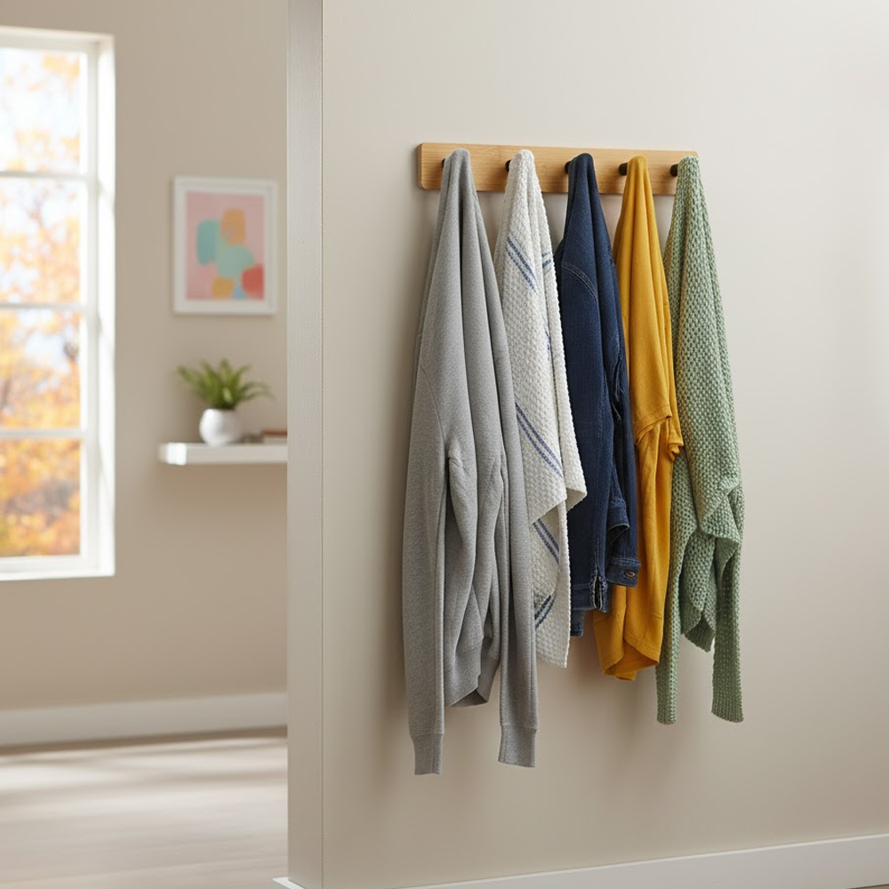 تجمع هذه العلاقة بين التصميم البسيط والعملي، لتمنحك طريقة ذكية لتعليق الملابس، الحقائب، المناشف، أو المفاتيح بكل سهولة دون الحاجة إلى الحفر أو المسامير.