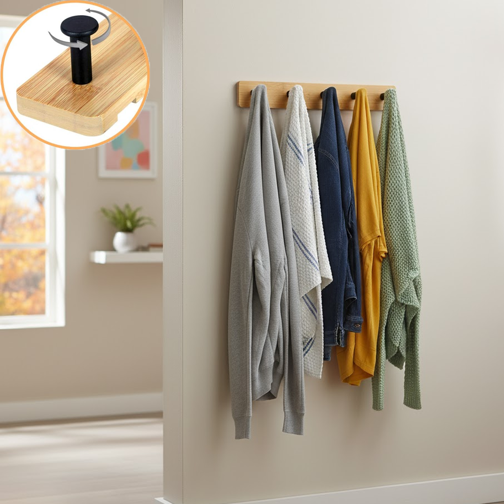 أضف لمسة طبيعية من الأناقة والتنظيم إلى منزلك مع علاقة الحائط اللاصقة المصنوعة من خشب الخيزران الفاخر.