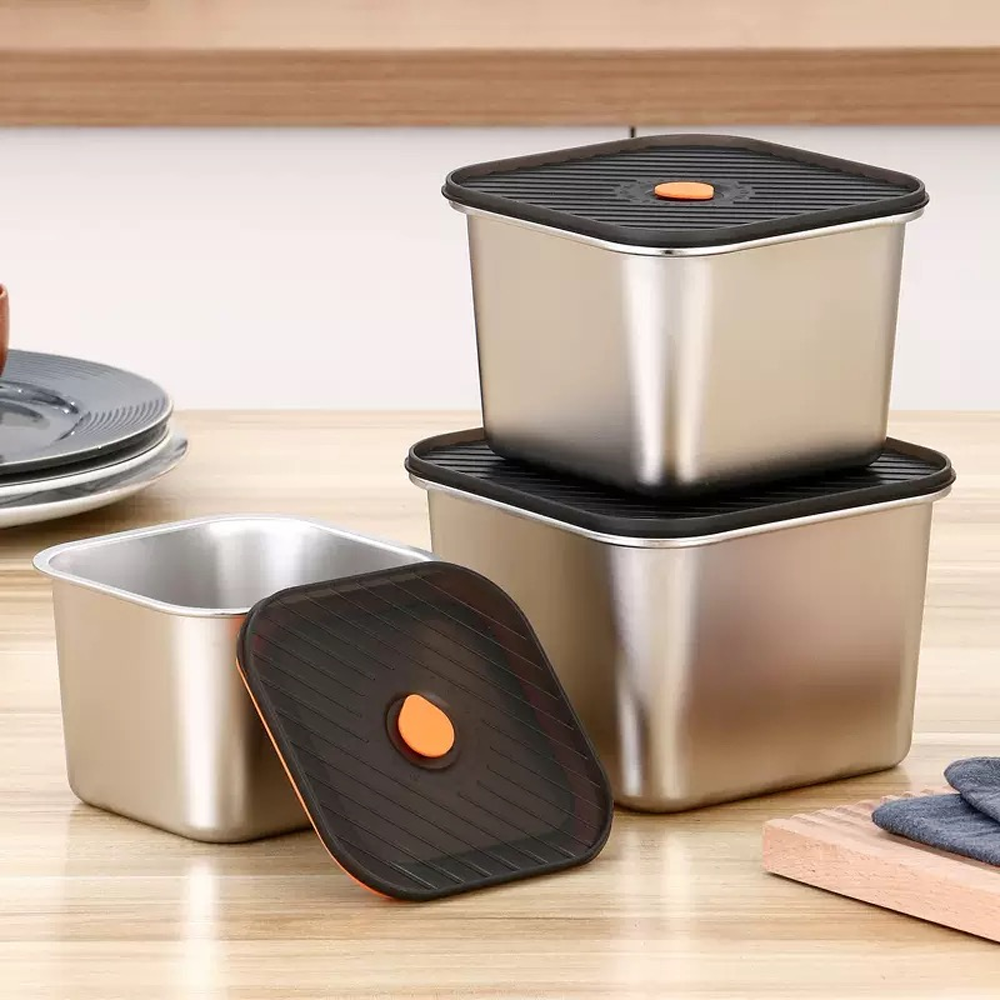 استمتع بحفظ وتنظيم طعامك بطريقة صحية وعملية مع طقم علب حفظ الطعام المصنوع من الستانلس ستيل عالي الجودة، المصمم ليمنحك أقصى درجات المتانة والنظافة وسهولة الاستخدام في المطبخ.