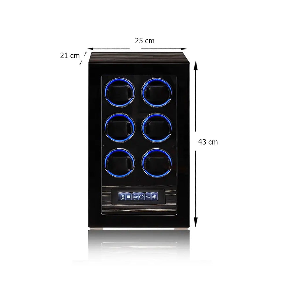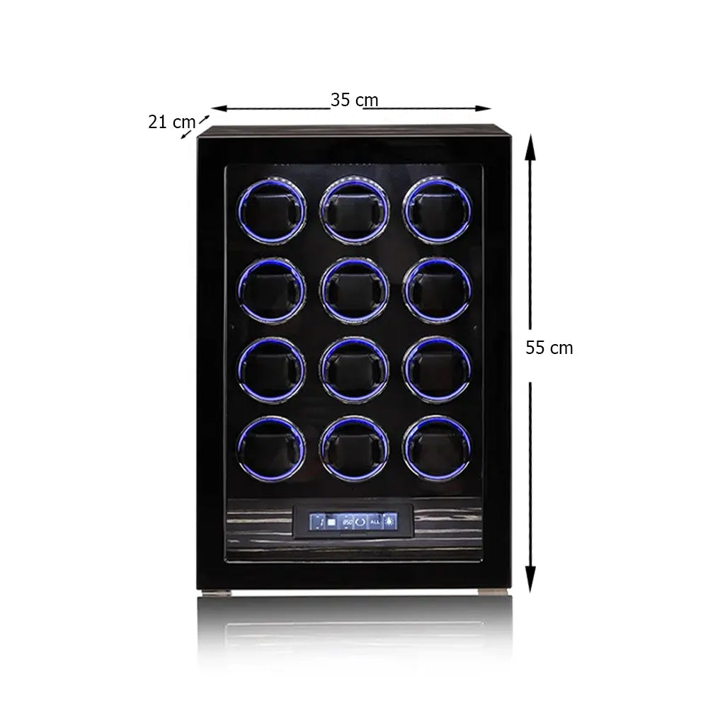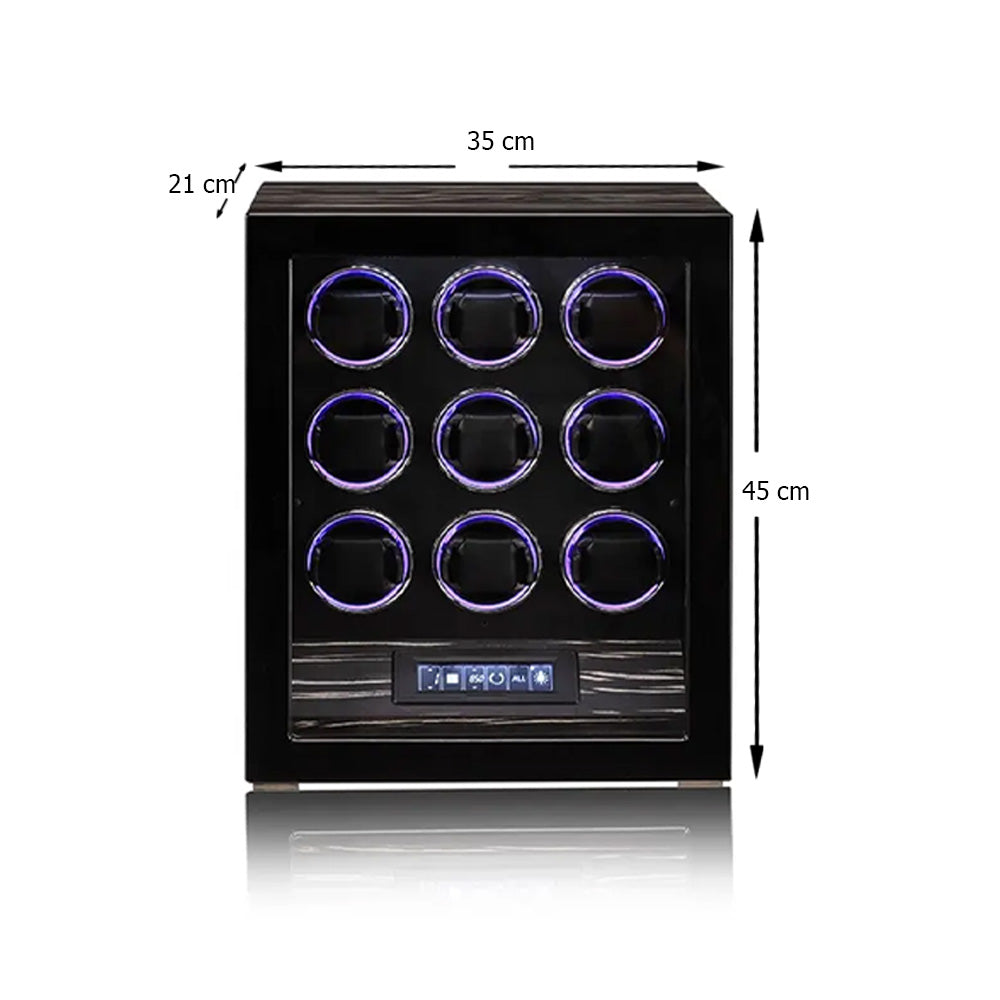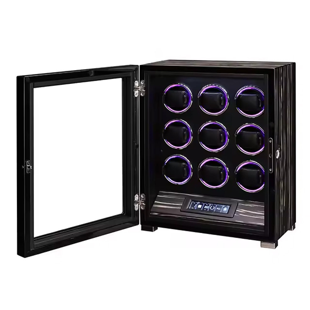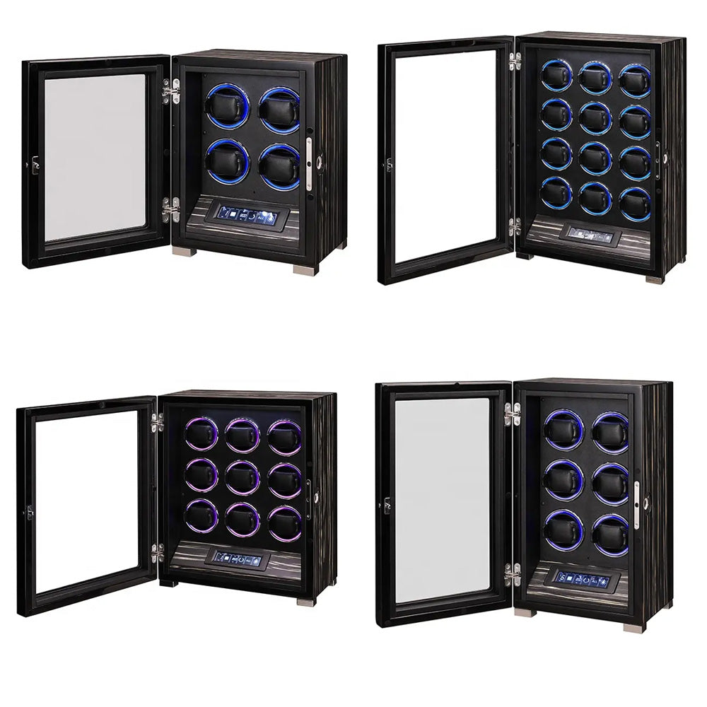علبة لف ساعات فاخرة متعددة – عرض LED وشاشة لمس LCD بتشطيب خشبي أسود أنيق