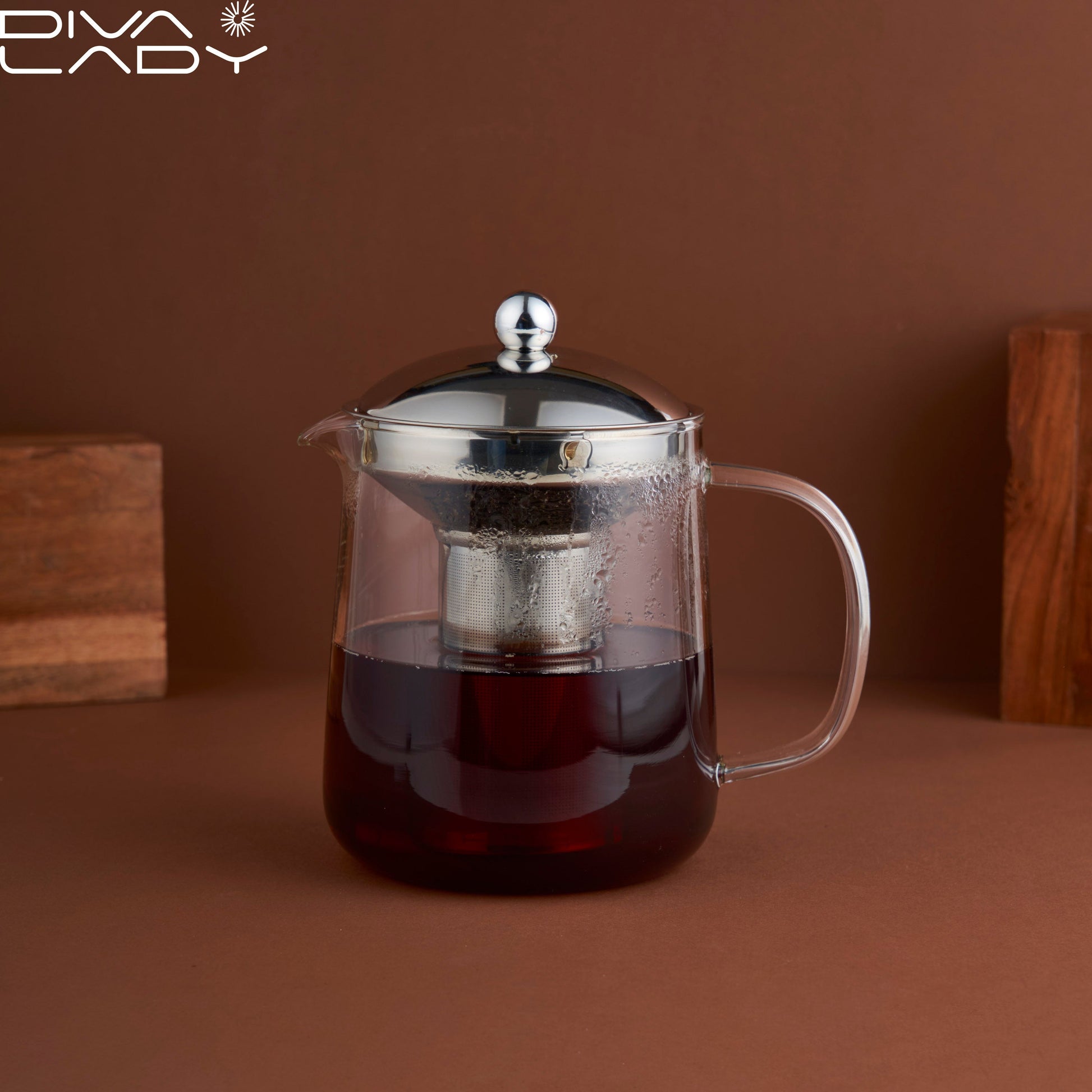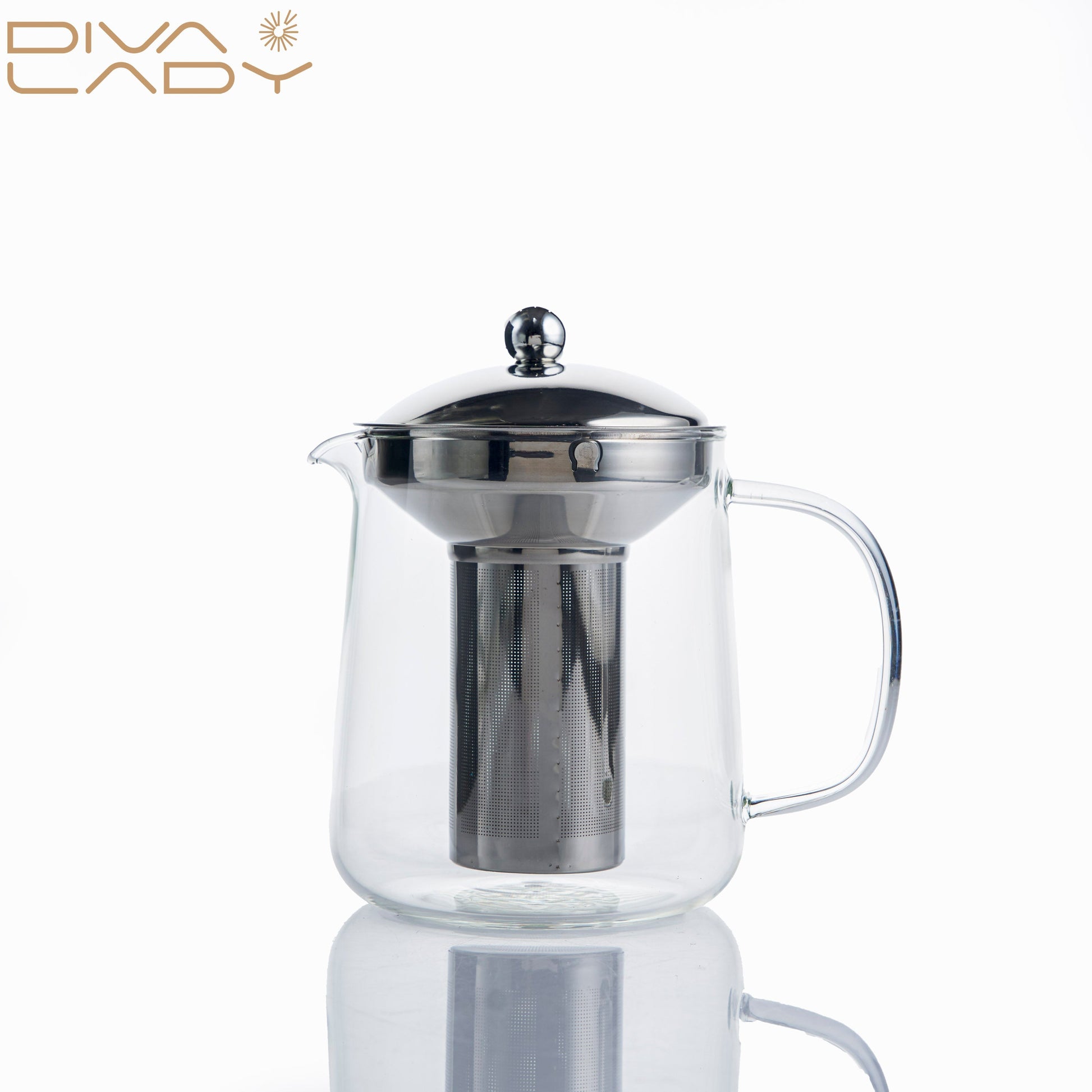 غورى مصنوع من زجاج الزجاج المقاوم للحرارة بتصميم عصري وانيق مع مصفاة و غطاء مصنوعين من الاستيل الفضى المقاوم للصدا
