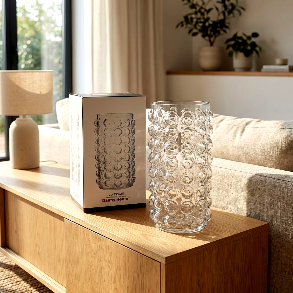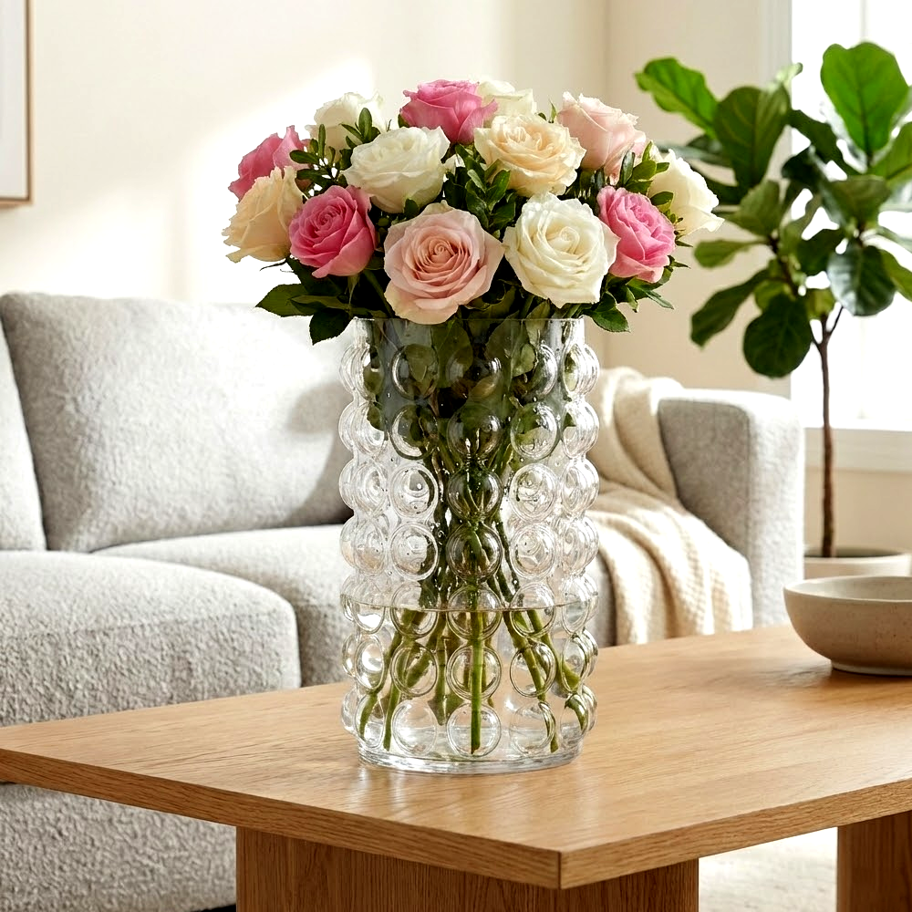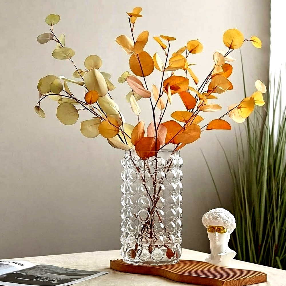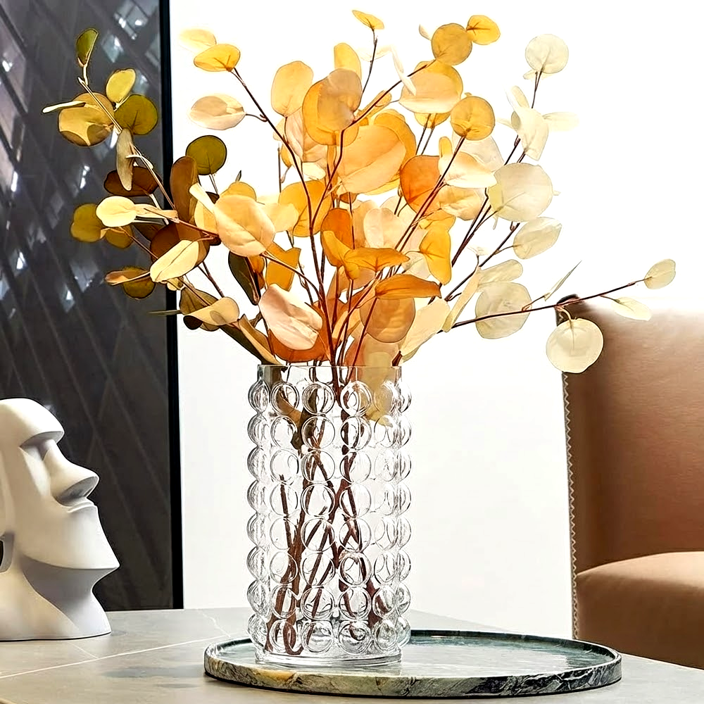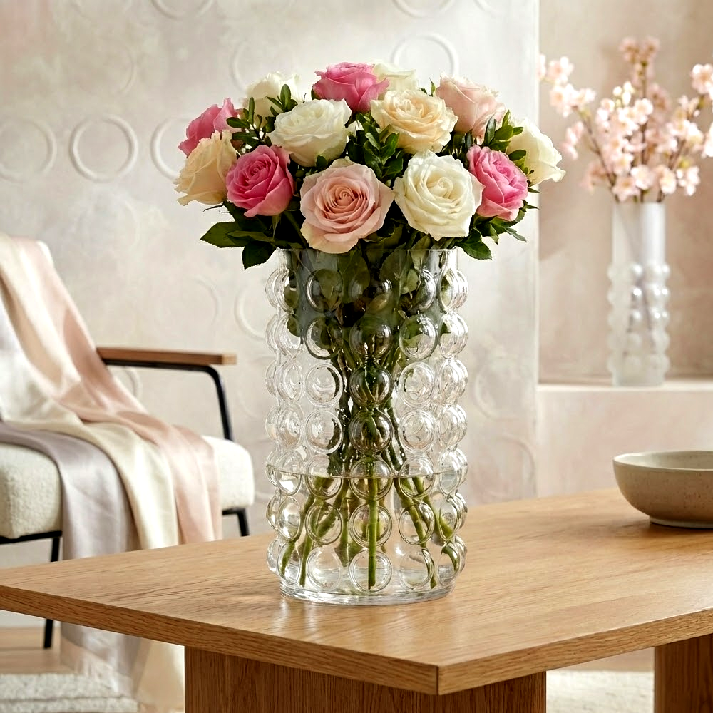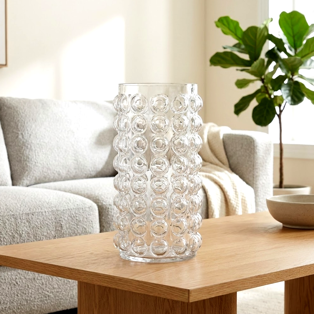 فازة زجاج بنقشة الفقاعات زجاج شفافة بتصميم دائري عصري – لمسة أنيقة لديكور المنزل