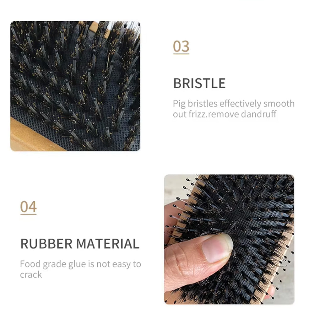 اعتني بشعرك بشكل طبيعي مع فرشاة الشعر الخشبية الطبيعية المقاومة للكهرباء الساكنة والمُفككة للتشابك. مصنوعة من خشب صديق للبيئة، تُقلل هذه الفرشاة من الكهرباء الساكنة، وتُفك تشابك الشعر بلطف، وتمنع تكسره. تُدلك شعيراتها الناعمة فروة الرأس لتعزيز الدورة الدموية ونمو الشعر بشكل صحي. مثالية لجميع أنواع الشعر، حيث توفر قبضة مريحة وتصميمًا أنيقًا وبسيطًا للاستخدام اليومي.