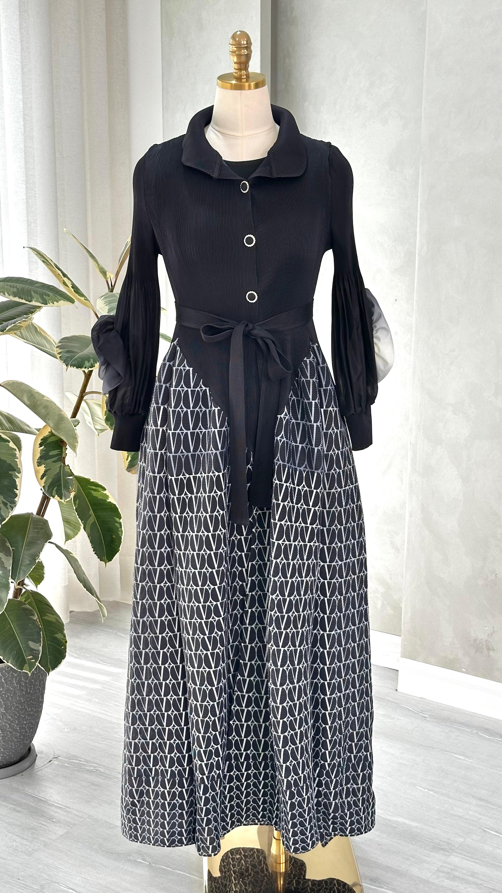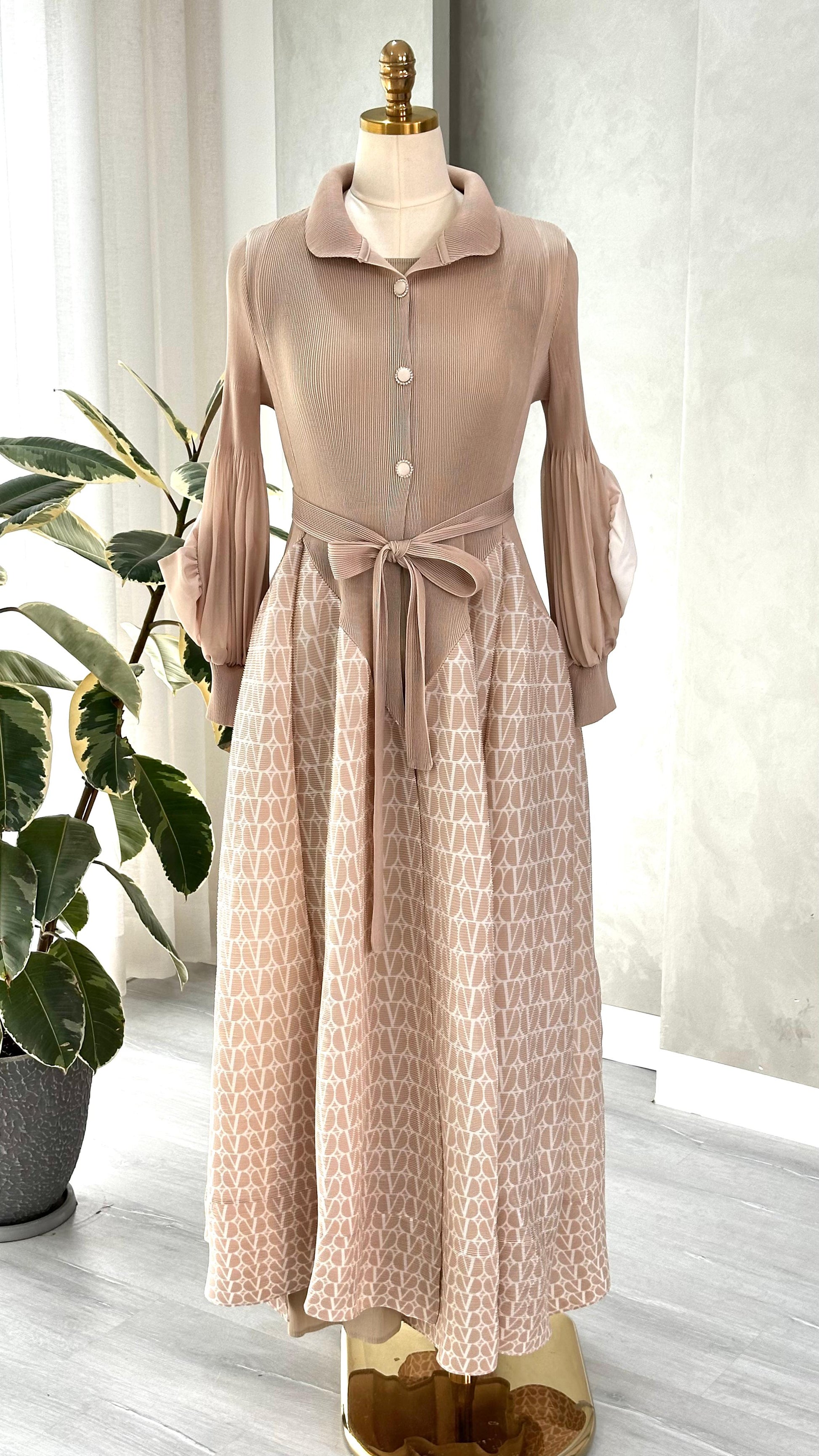الفستان يعكس توازناً بين التصميم الكلاسيكي واللمسات العصرية، ويصلح لإطلالة محتشمة وأنيقة في المناسبات الرسمية أو اليومية الراقية.