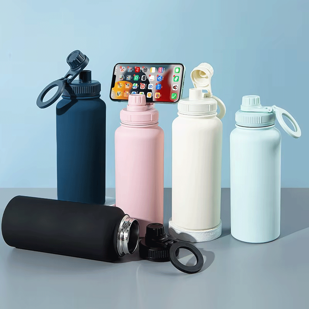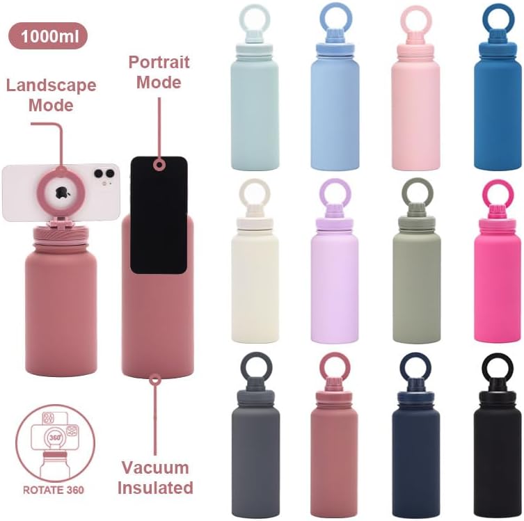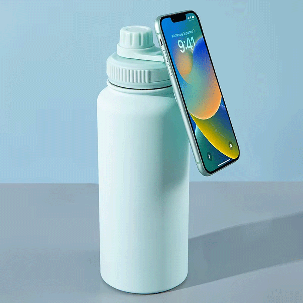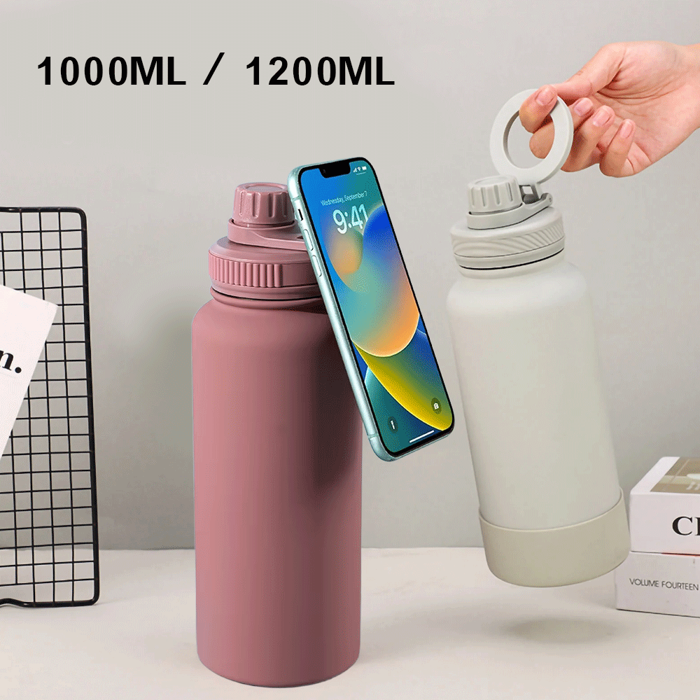 1. زجاجة ماء معزولة من الفولاذ المقاوم للصدأ مع حامل مغناطيسي مبتكر للهاتف.