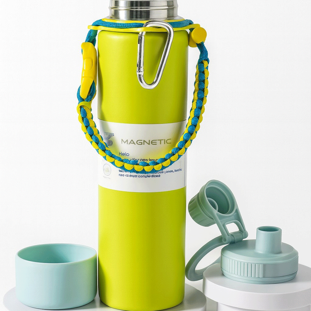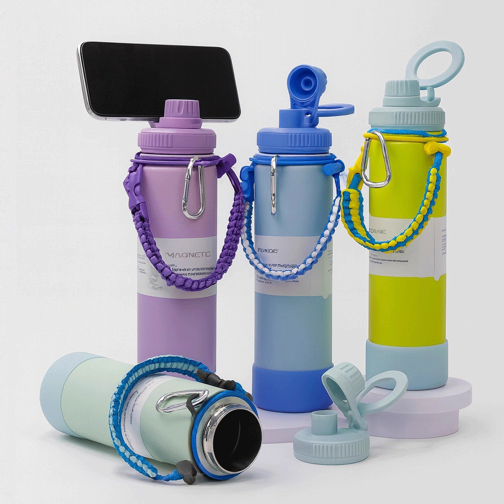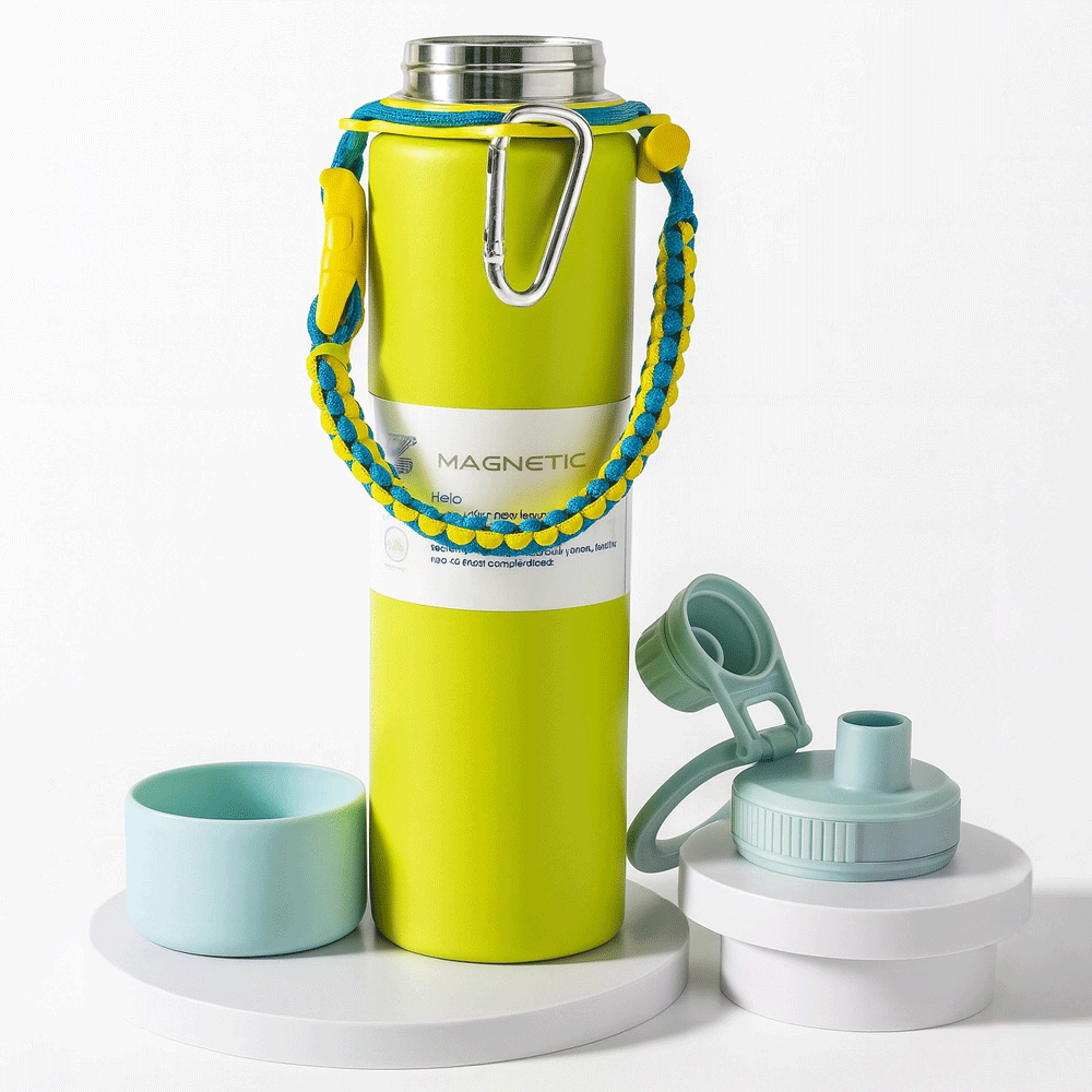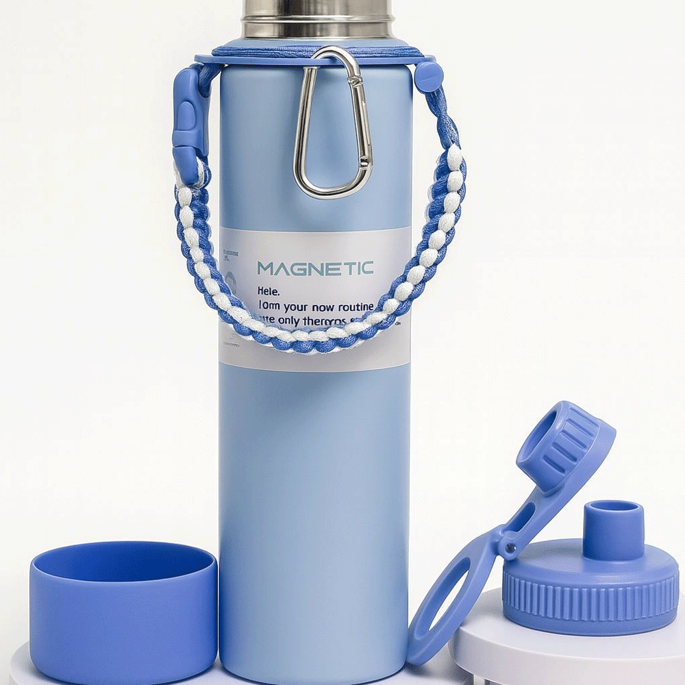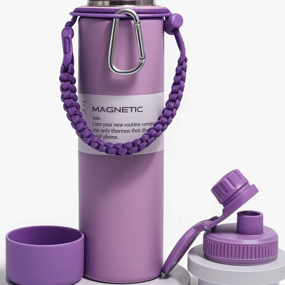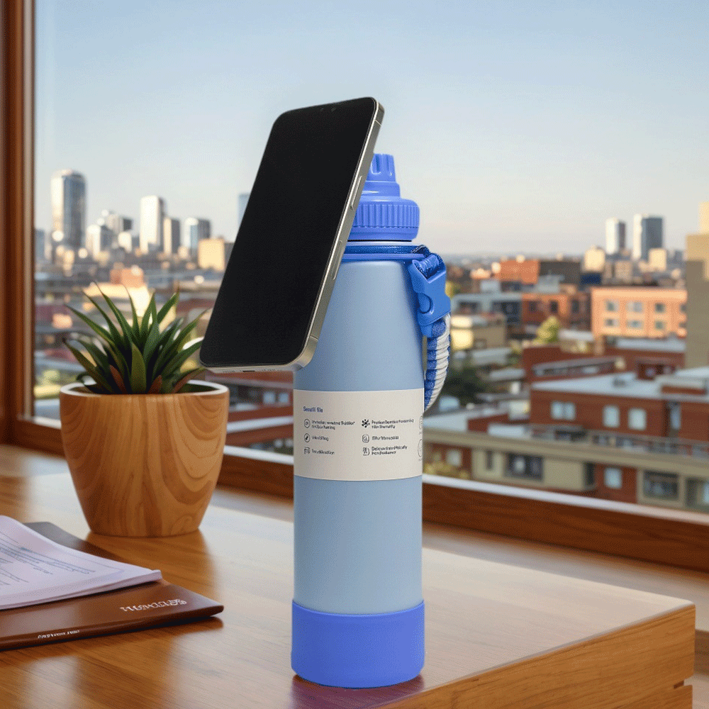 1. زجاجة ماء معزولة من الفولاذ المقاوم للصدأ مع حامل مغناطيسي مبتكر للهاتف.