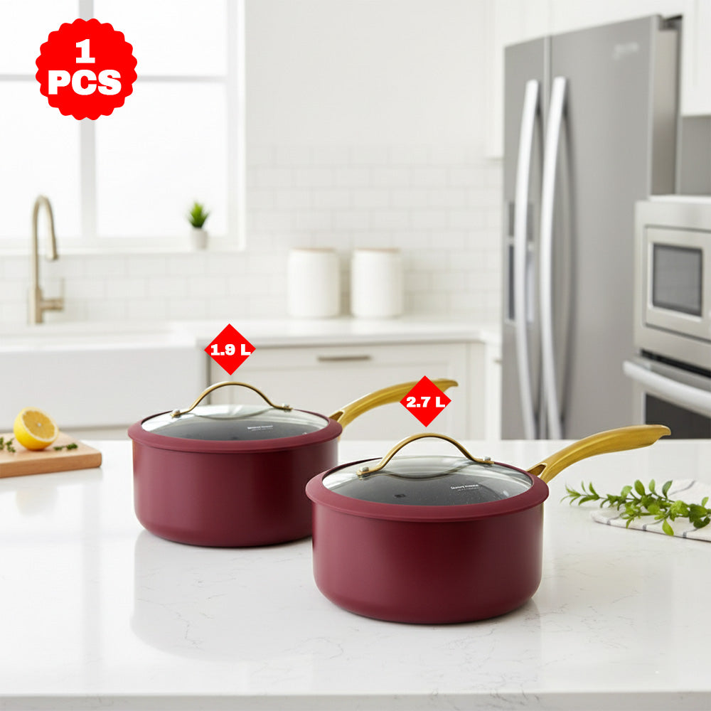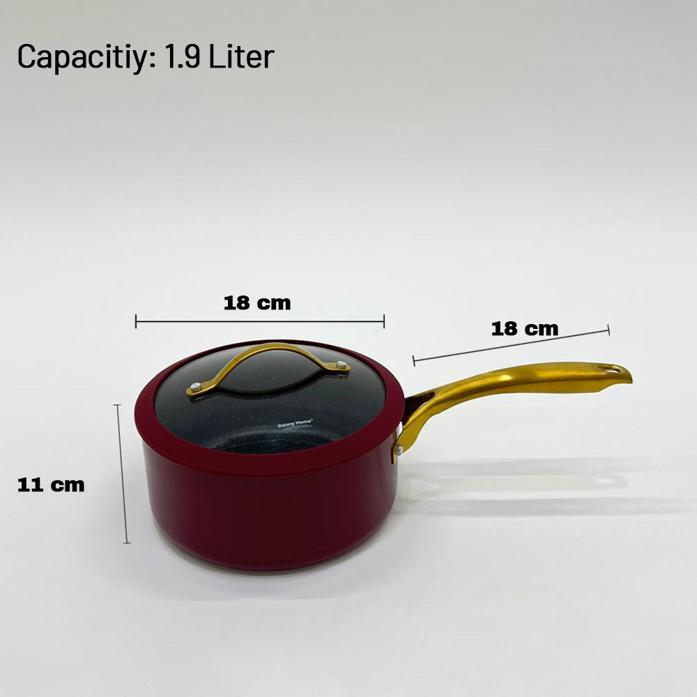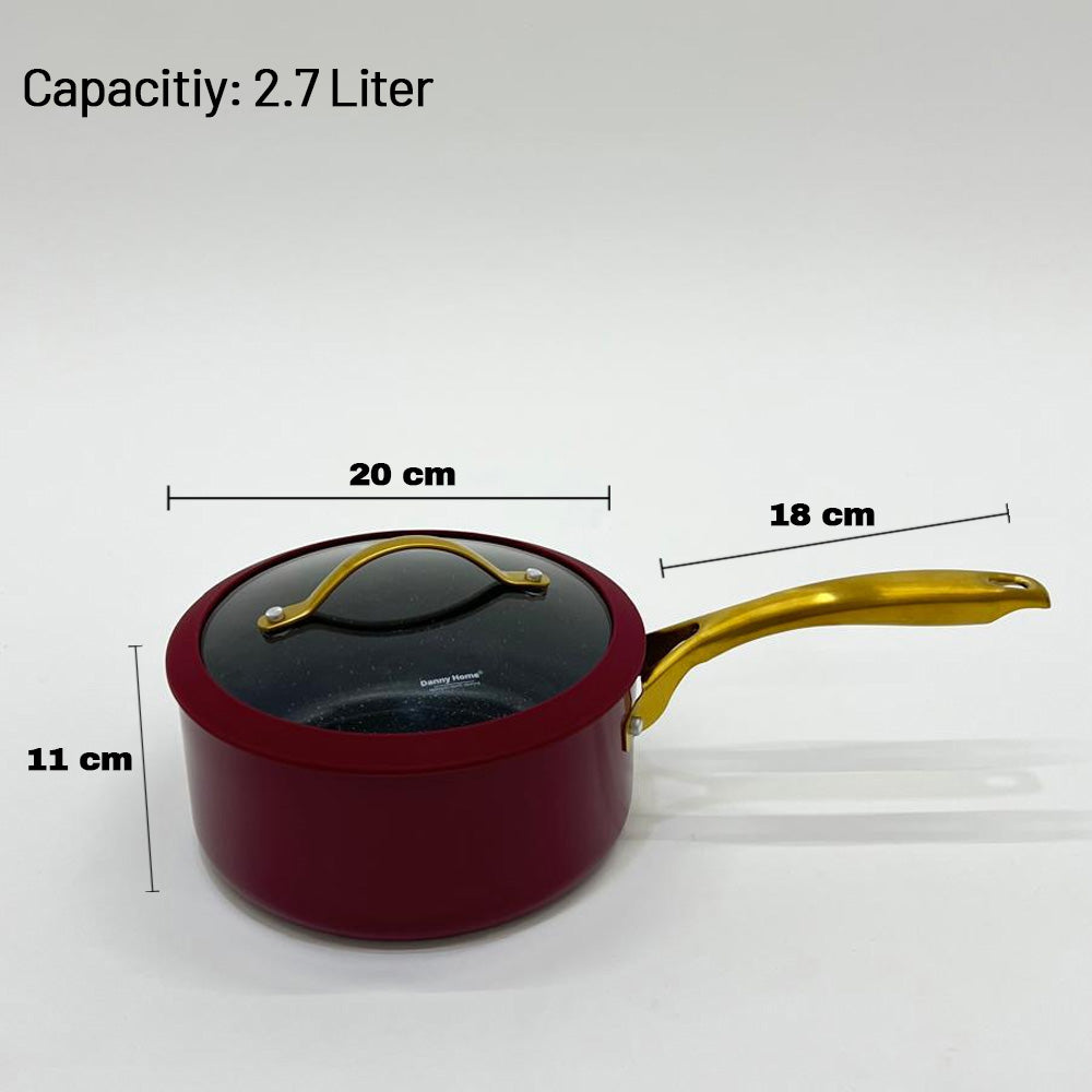 حسّن مطبخك مع قدر داني هوم الأنيق غير اللاصق، الذي يتميز ببطانة داخلية متينة مطلية بالرخام ومقبض ذهبي أنيق. متوفر بحجمين: 1.9 لتر (18 سم) و2.7 لتر (20 سم)، هذا القدر مثالي للطهي اليومي، من الحساء والصلصات إلى المعكرونة والخضراوات. يأتي مع غطاء زجاجي مقاوم للحرارة وقاعدة معززة آمنة للاستخدام في الحث الحراري لتسخين سريع ومتساوي.