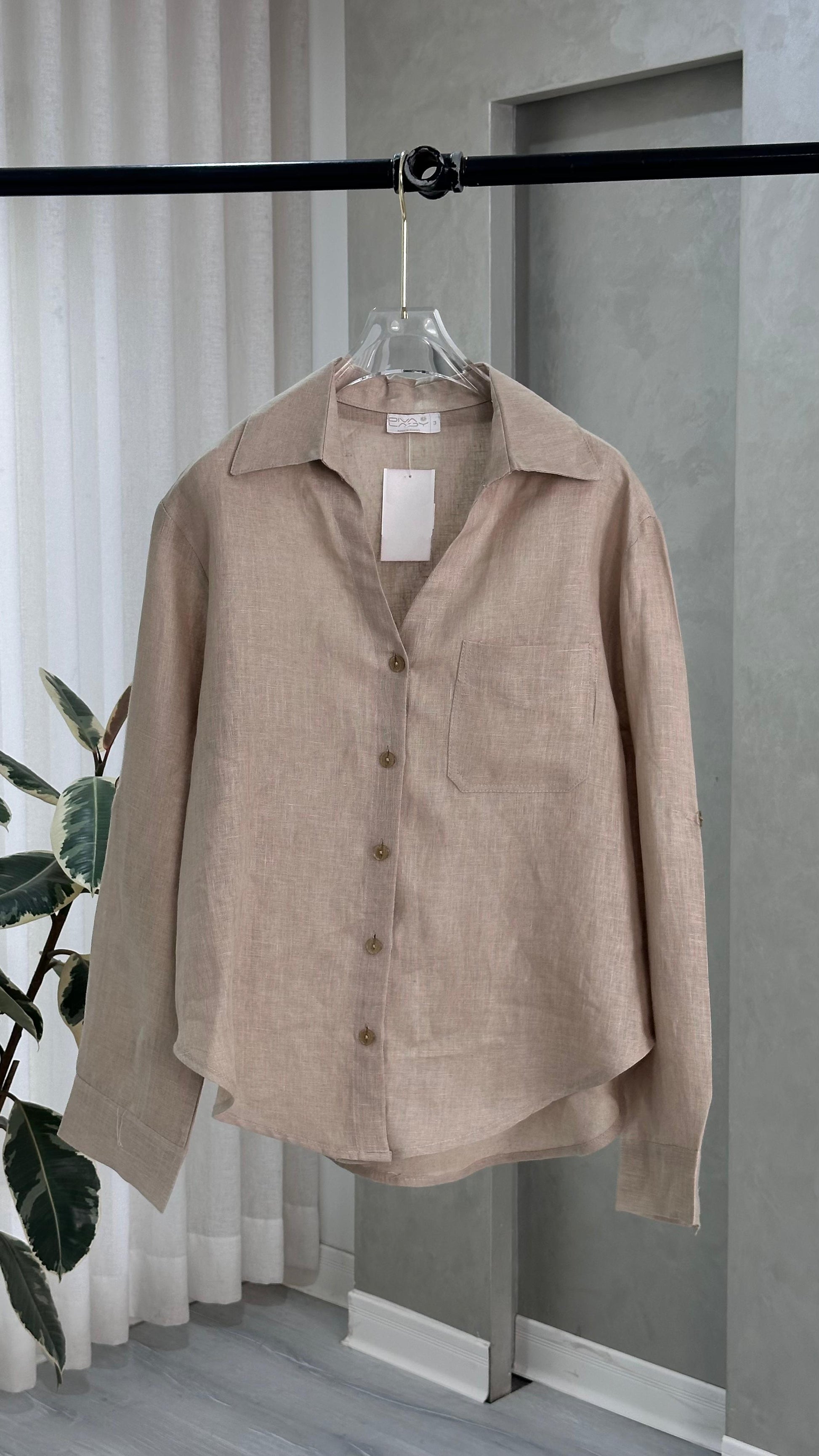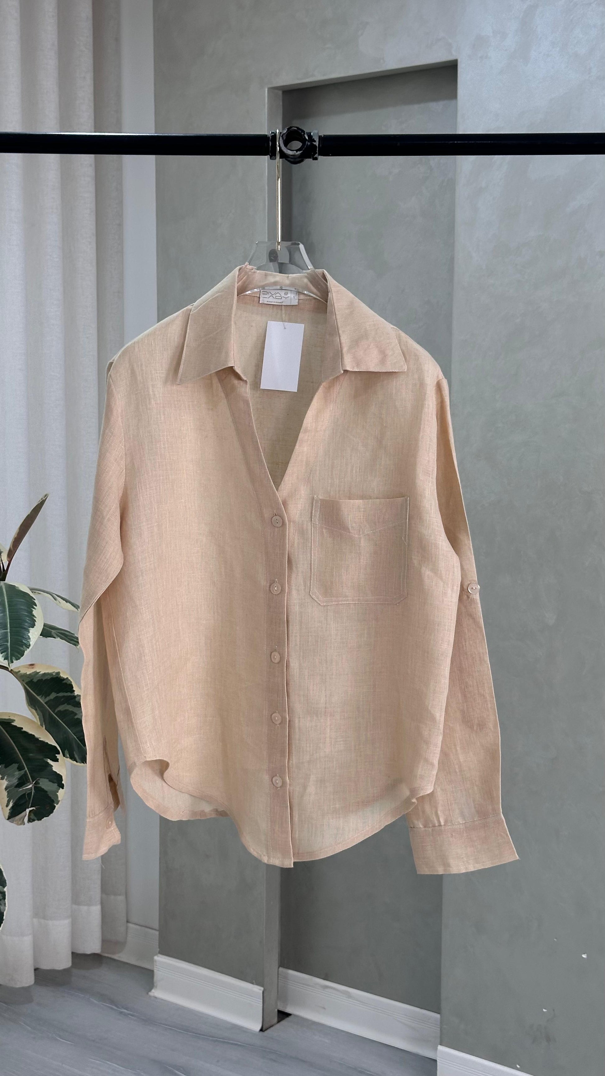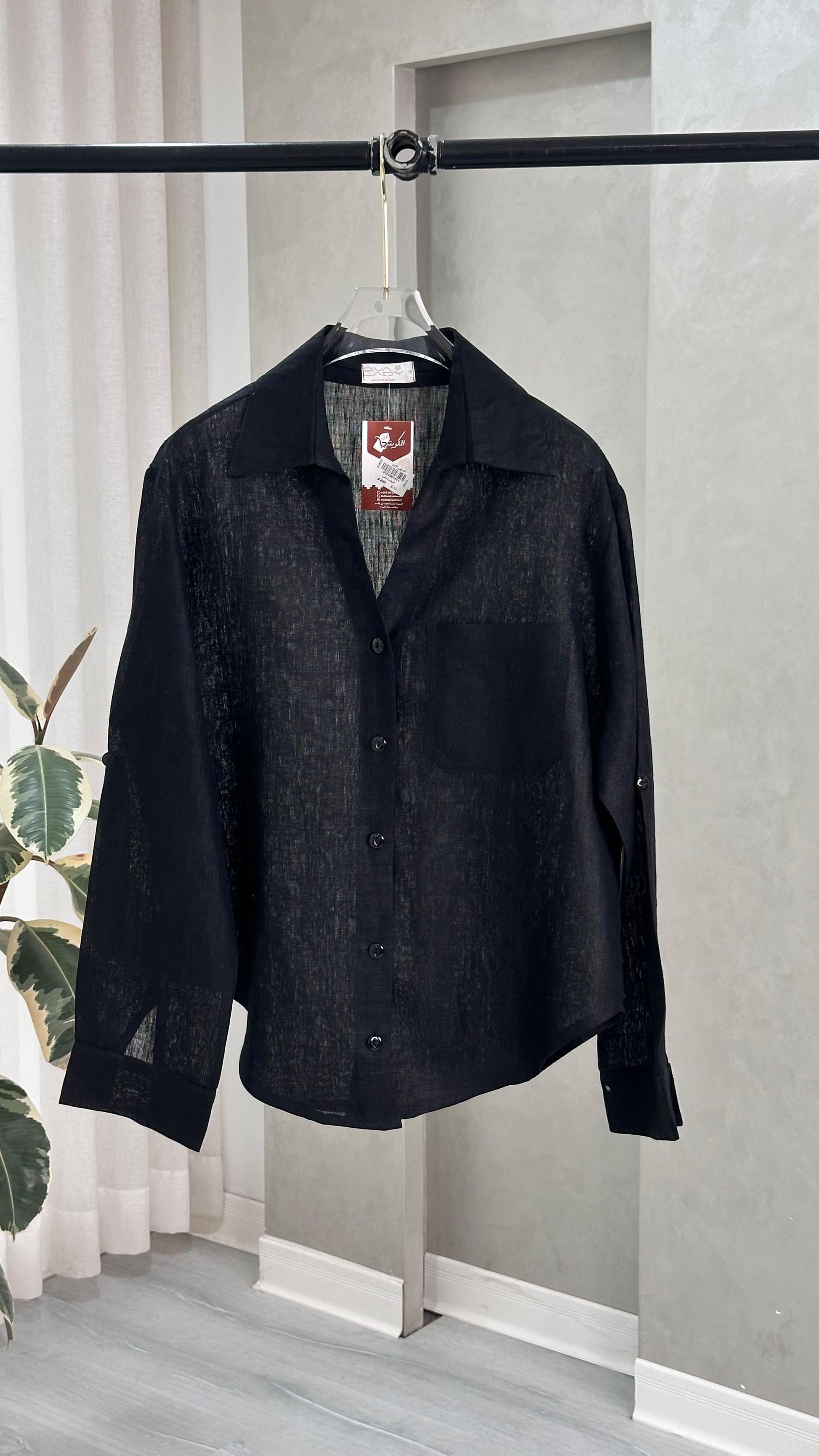 القميص بأكمام طويلة مصنوع من خامة خفيفة شبه شفافة، ويتميّز بقصّة مريحة وانسيابية. يحتوي على ياقة كلاسيكية وأزرار أمامية تمتد على طول الوسط، مع خياطة دقيقة تمنح مظهرًا ناعمًا ومنظّمًا. التصميم بسيط وهادئ، ويصلح للتنسيق مع قطع متعددة سواء للإطلالات اليومية أو الرسمية ذات الطابع الخفيف.