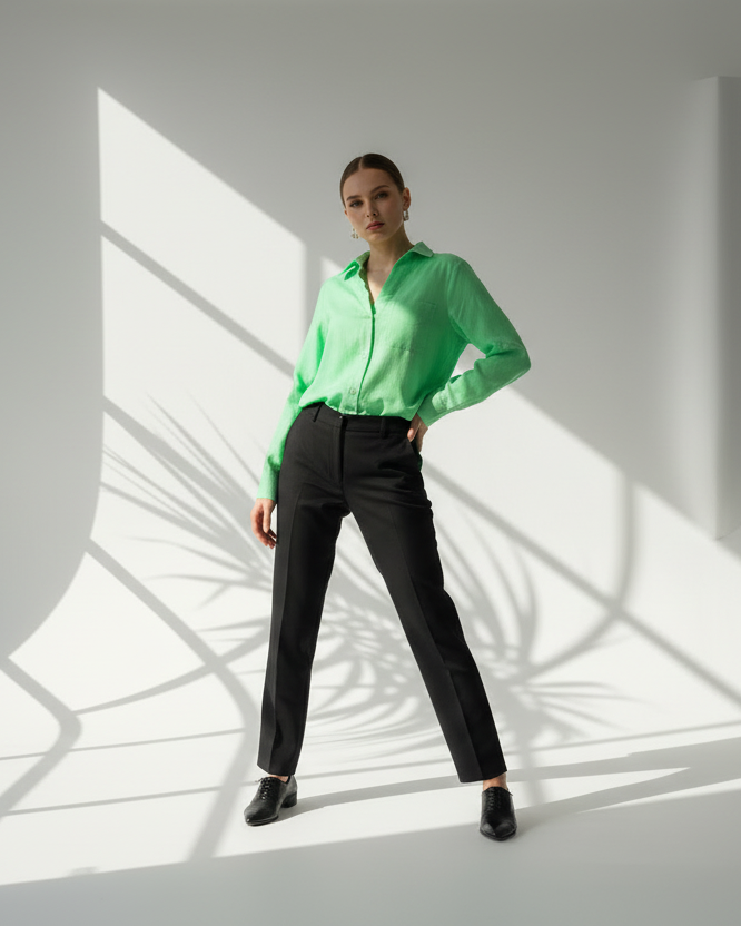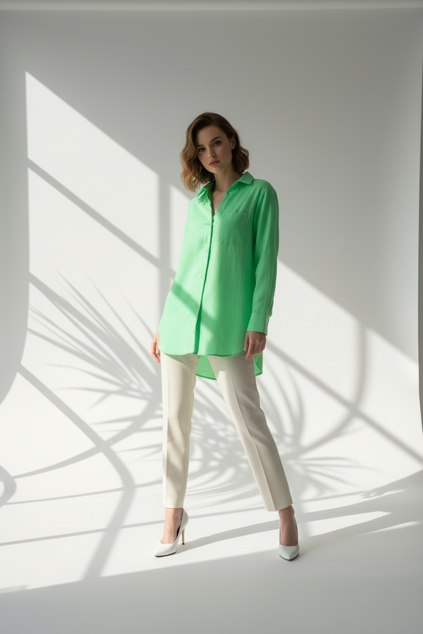 قطعة أساسية لا غنى عنها في خزانة ملابسك، تجمع بين المظهر الكلاسيكي الأنيق والشعور بالراحة والانتعاش. صمم ليكون الرفيق المثالي لإطلالات العمل الكاجوال أو تنسيقات العطلات الهادئة، حيث يضيف لمسة من الرقة والنعومة إلى مظهرك.