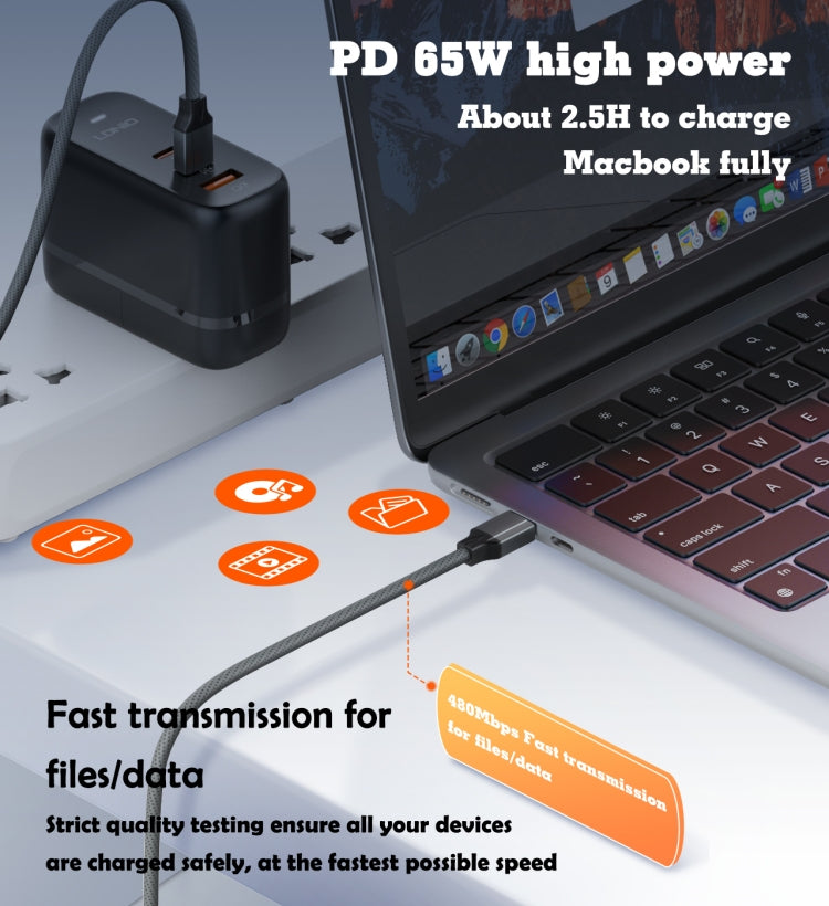 كابل LDNIO من النوع C إلى النوع C بطول 2 متر و 65 وات