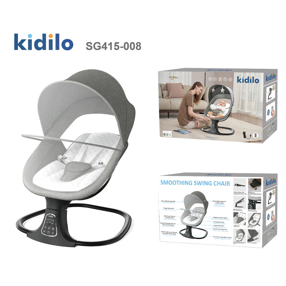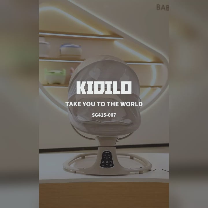 كرسي Kidilo SG415-008 متعدد الاستخدامات ومريح لتهدئة طفلك. مصمم ليتحول بسلاسة من أرجوحة كهربائية هادئة إلى كرسي هزاز ثابت، ويوفر وظائف متعددة لتلبية احتياجات طفلك.