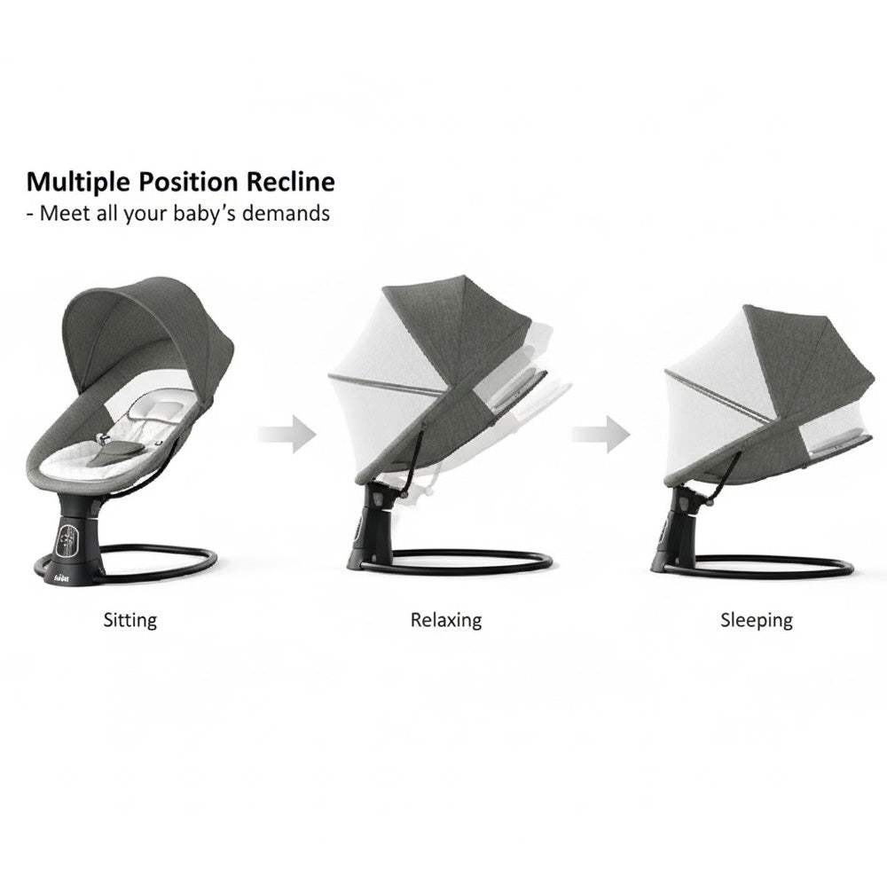 أوضاع إمالة متعددة: اضبط المقعد على زوايا مختلفة (جلوس، استرخاء، نوم) لضمان راحة طفلك في جميع الأوقات.