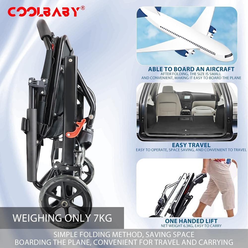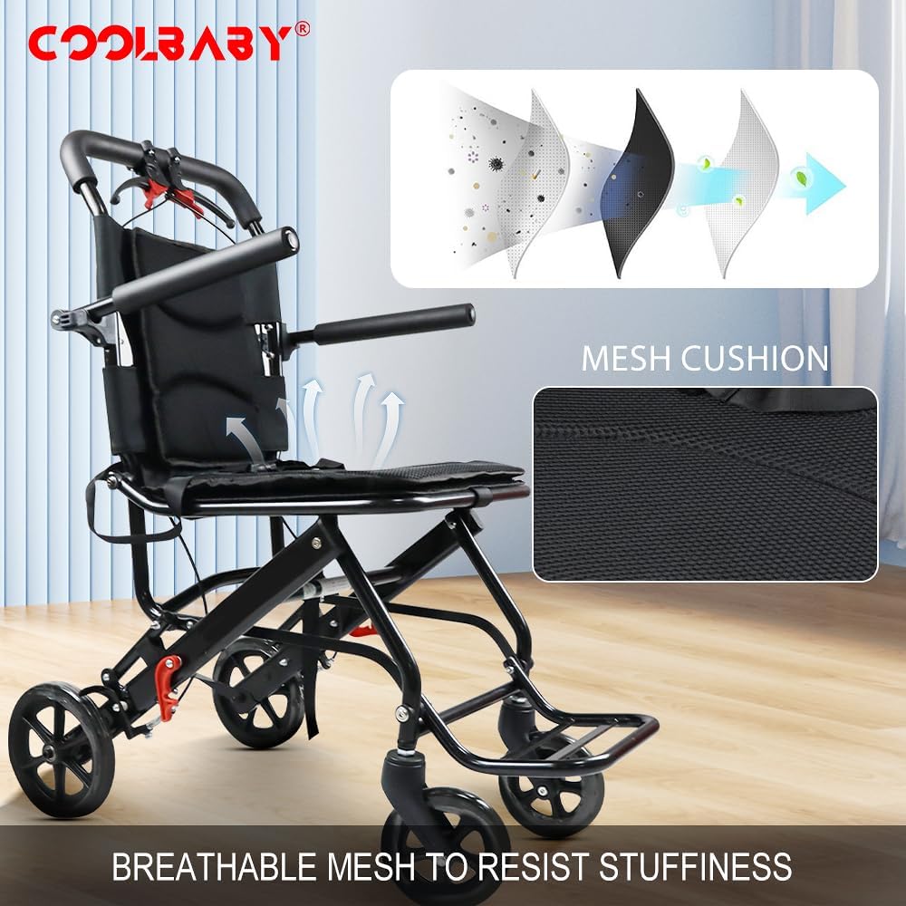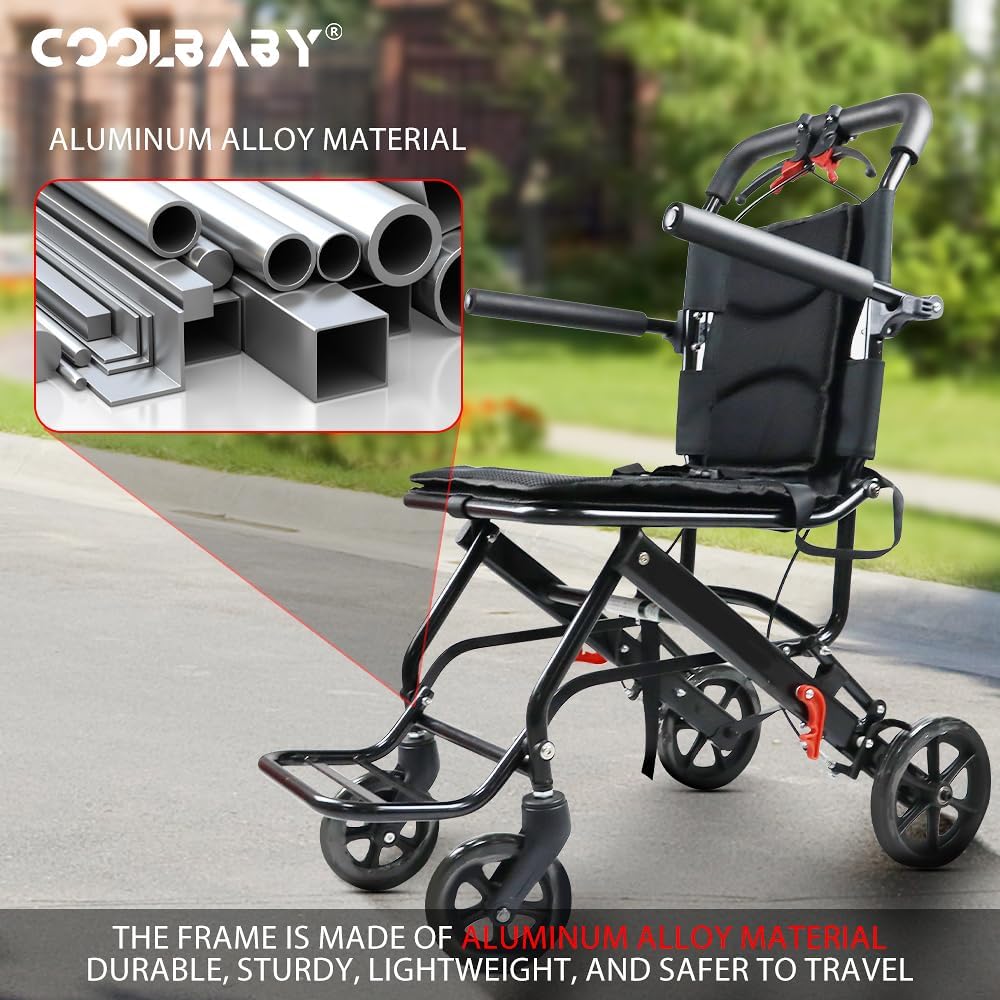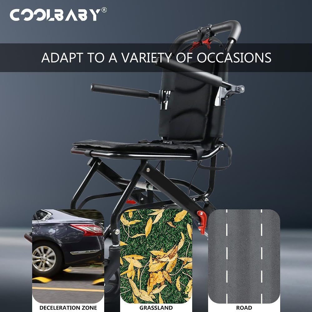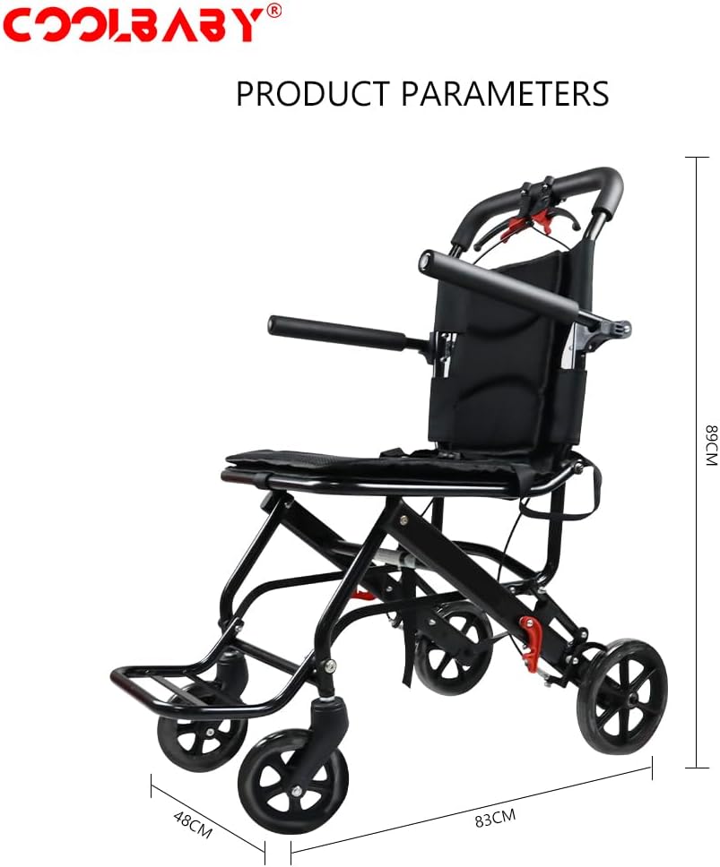 كرسي متحرك خفيف الوزن قابل للطي، مع فرامل، حزام امان، كرسي متحرك للبالغين والأطفال، يشمل حقيبة حمل