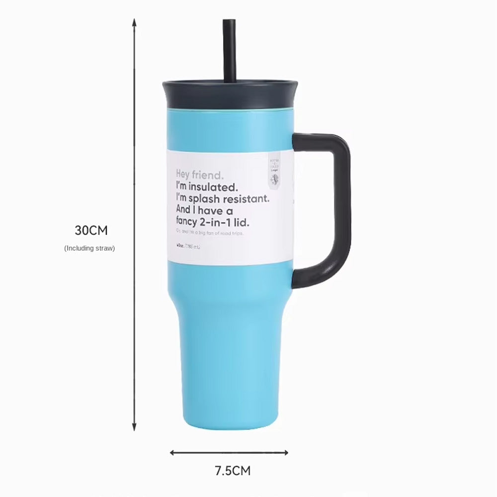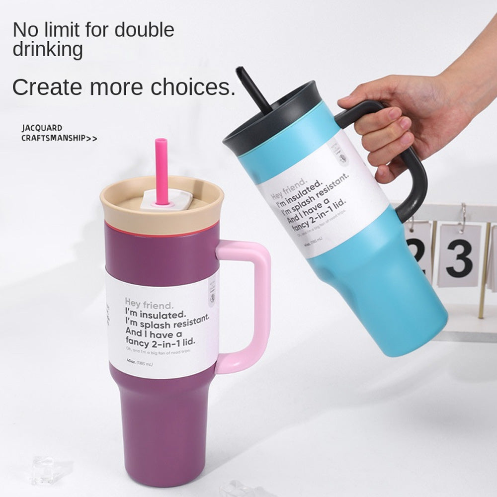 يوفر المقبض الكبير المريح قبضة مريحة، بينما يتيح لك الغطاء المقاوم للانسكاب "2 في 1" شرب الماء مباشرة أو استخدام ماصة - مثالي للسفر، والاستخدام المكتبي، والتمارين الرياضية، والرحلات البرية، والترطيب اليومي. قاعدته الرفيعة تناسب معظم حاملات أكواب السيارات، مما يجعله الرفيق المثالي أثناء التنقل.