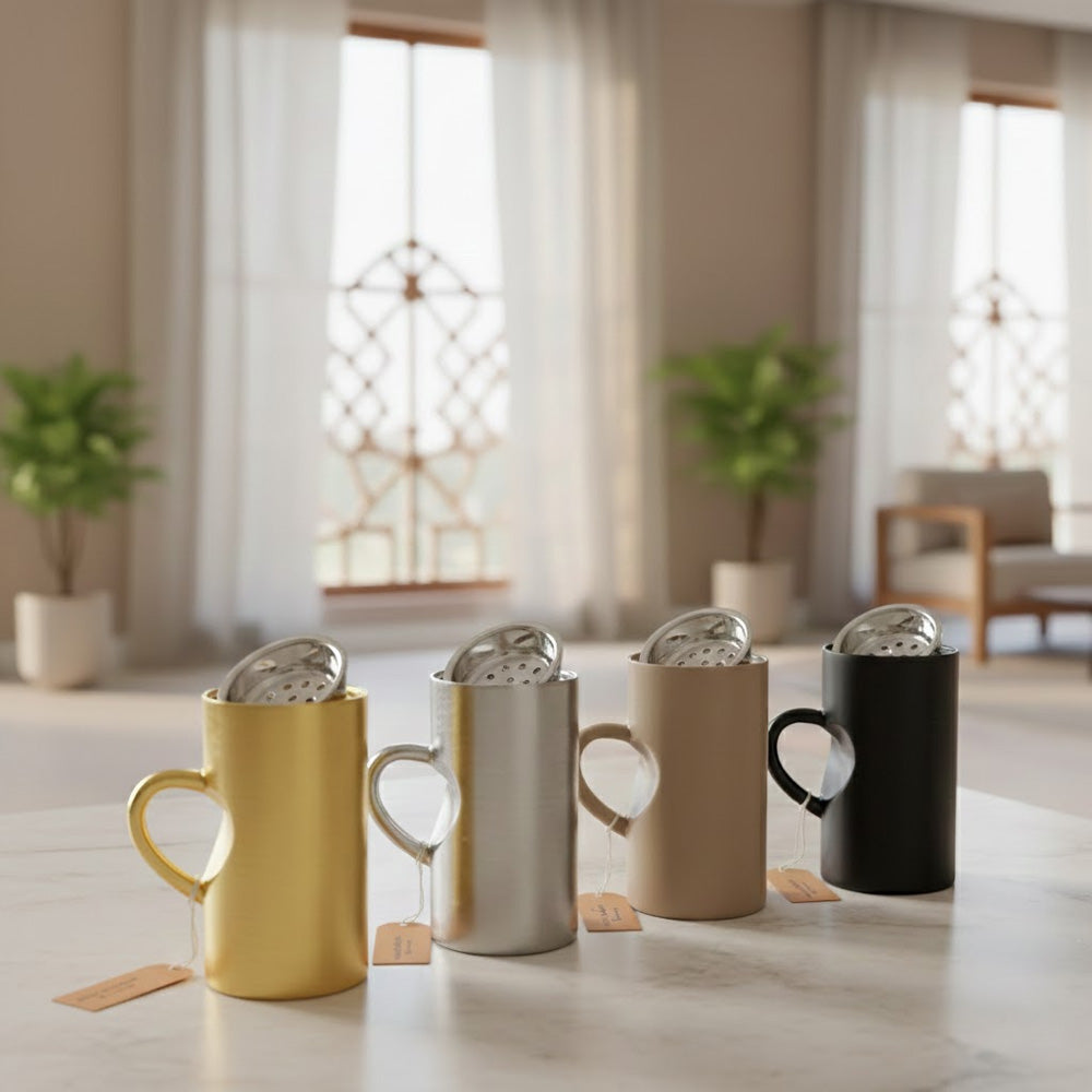 تشكيلة ألوان راقية: متوفر بأربعة ألوان جذابة (ذهبي، فضي، أسود، وبيج) لتناسب جميع الأذواق والمجالس.
