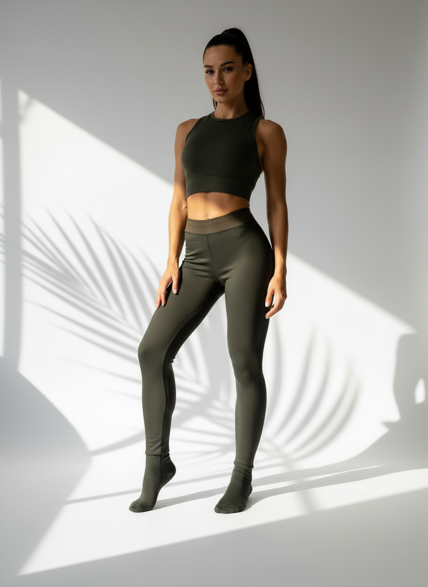 بنطال ليقنز أساسي بقصّة عالية الخصر تمنحك ثبات وراحة طوال اليوم. مصنوع من قماش مطاطي ناعم يتكيّف مع حركة الجسم بدون شفافية، ويظهر القوام بشكل مشدود وأنيق.