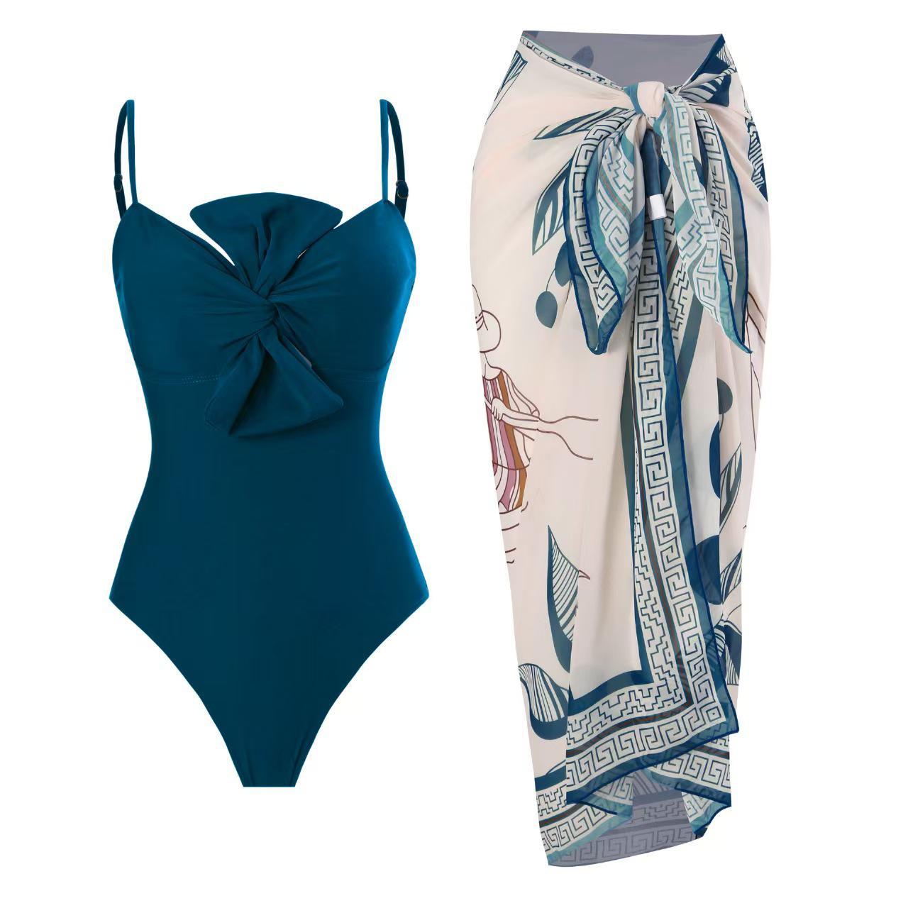 تصميم جذاب ومريح: قطعة سباحة واحدة بفتحة صدر مصممة بعقدة أنيقة، توفر دعماً مثالياً وشكلاً متناسقاً.