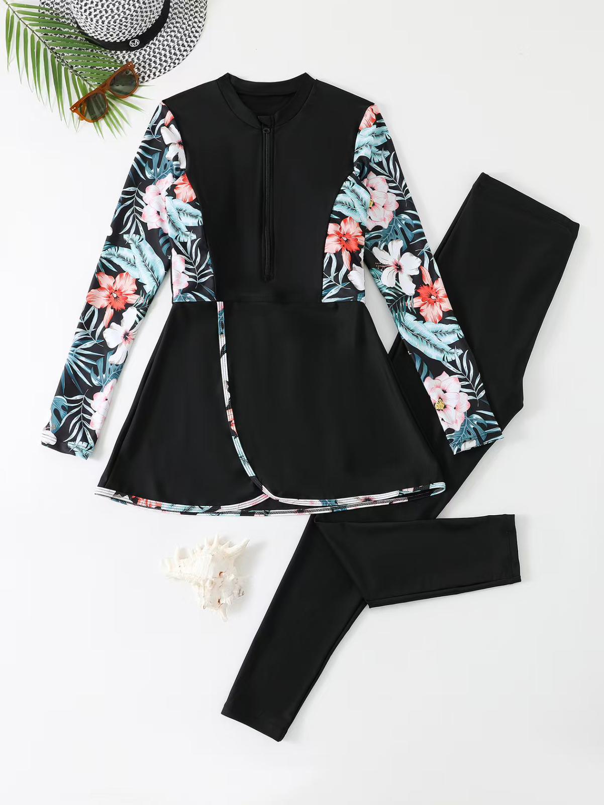 تألقي بإطلالة مميزة على الشاطئ مع طقم السباحة النسائي المصمم بذوق رفيع، والذي يتكوّن من بنطال ضيق مريح وكاش طويل شفاف بنقشة فنية جذابة. يتميز بقصة أنثوية أنيقة مع ربطة جانبية تضيف لمسة من الرقي، كما يوفر تغطية مثالية وحركة حرة لراحة كاملة أثناء السباحة أو المشي على الشاطئ.