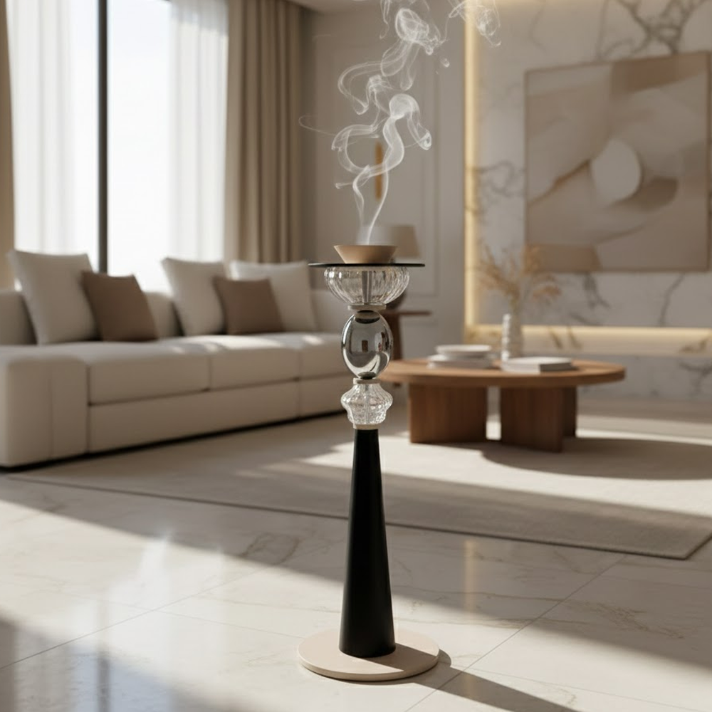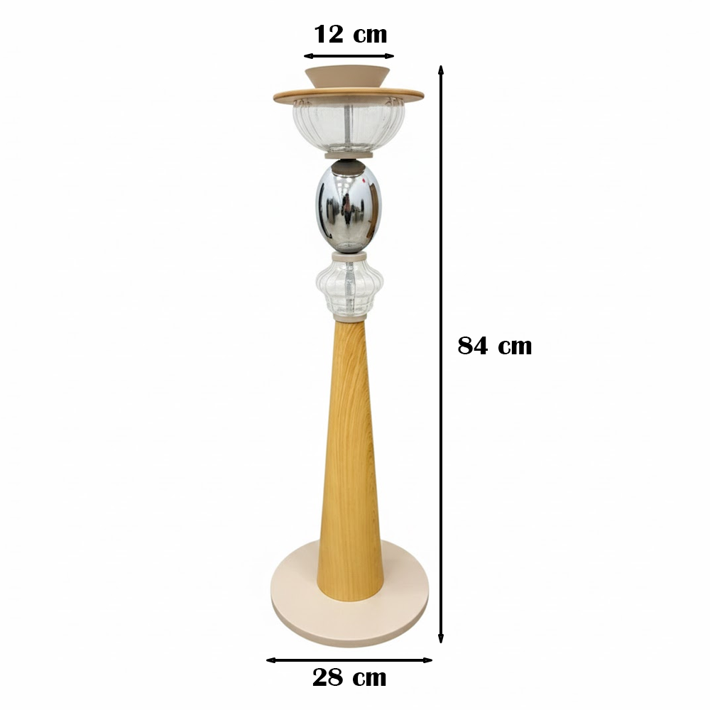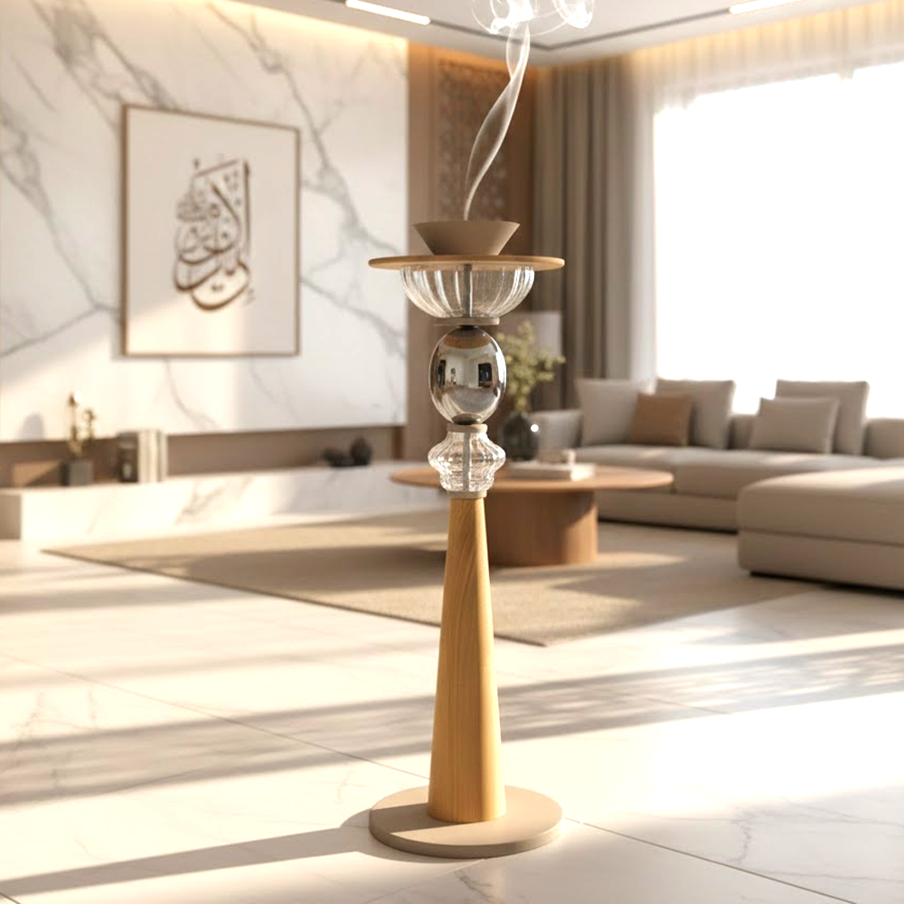 ارتقِ بأجواء منزلك مع المبخرة الأرضية الفاخرة ذات التصميم العصري الأنيق، المصممة خصيصًا لتكون قطعة ديكور مميزة إلى جانب وظيفتها الأساسية في تبخير البخور والعود. تجمع المبخرة بين الخشب والزجاج والمعدن لتمنحك تجربة استخدام راقية تعكس الذوق الفخم.