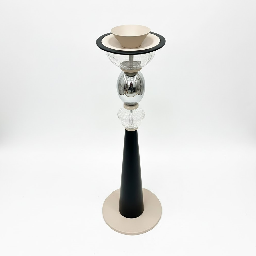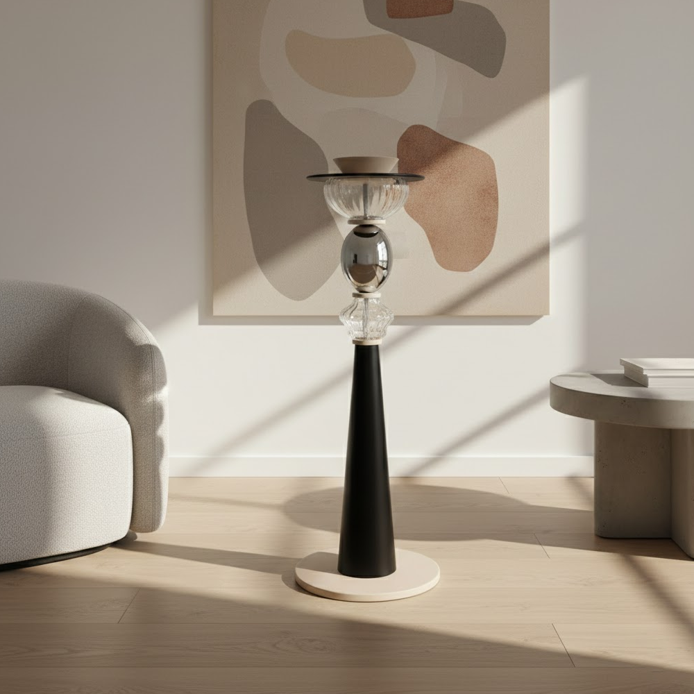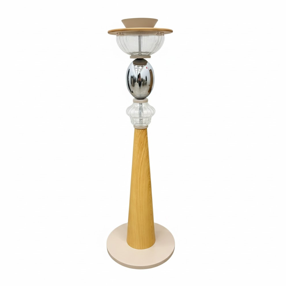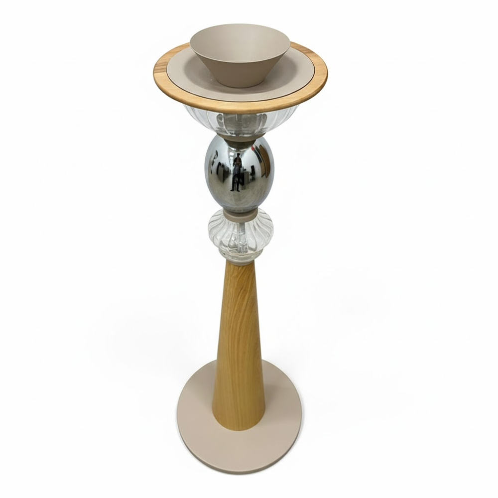 ارتقِ بأجواء منزلك مع المبخرة الأرضية الفاخرة ذات التصميم العصري الأنيق، المصممة خصيصًا لتكون قطعة ديكور مميزة إلى جانب وظيفتها الأساسية في تبخير البخور والعود. تجمع المبخرة بين الخشب والزجاج والمعدن لتمنحك تجربة استخدام راقية تعكس الذوق الفخم.