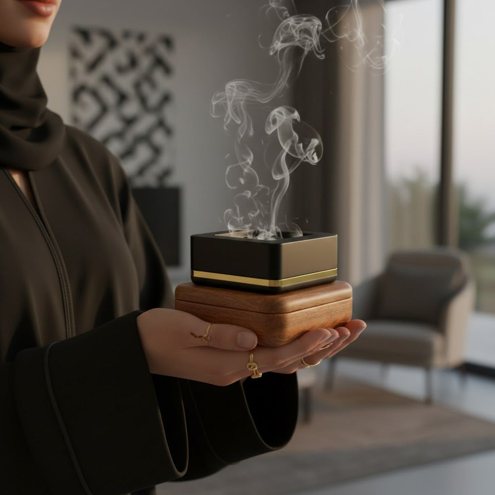 صُنعت المبخرة من خشب طبيعي أملس، وتتميز بغطاء مغناطيسي قابل للإزالة لسهولة الاستخدام والتعامل الآمن. في الداخل، يوجد كوب معدني مقاوم للحرارة لحفظ الفحم أو البخور بأمان، بينما يسمح الغطاء المثقب بانتشار العطر بلطف في أرجاء الغرفة.