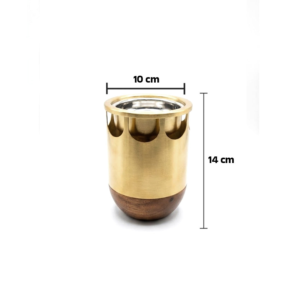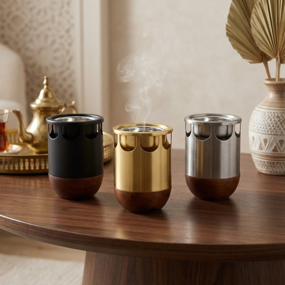 أضف لمسة جمالية إلى مساحتك مع مبخرة العود الأنيقة المصنوعة من الفولاذ المقاوم للصدأ، والمصممة بعناية فائقة لتجمع بين الأصالة والحداثة. مصنوعة من الفولاذ المقاوم للصدأ المتين، ومزينة بقاعدة خشبية طبيعية، مما يضمن ثباتها ويضفي لمسة دافئة وراقية. يسمح تصميمها العلوي ذو الفتحات بتوزيع عبير العود والبخور بسلاسة، ليملأ المكان برائحة غنية تدوم طويلاً. مثالية للمنازل والمكاتب وغرف الصلاة، كما أنها هدية رائعة، تجمع هذه المبخرة بين العملية والجمال.