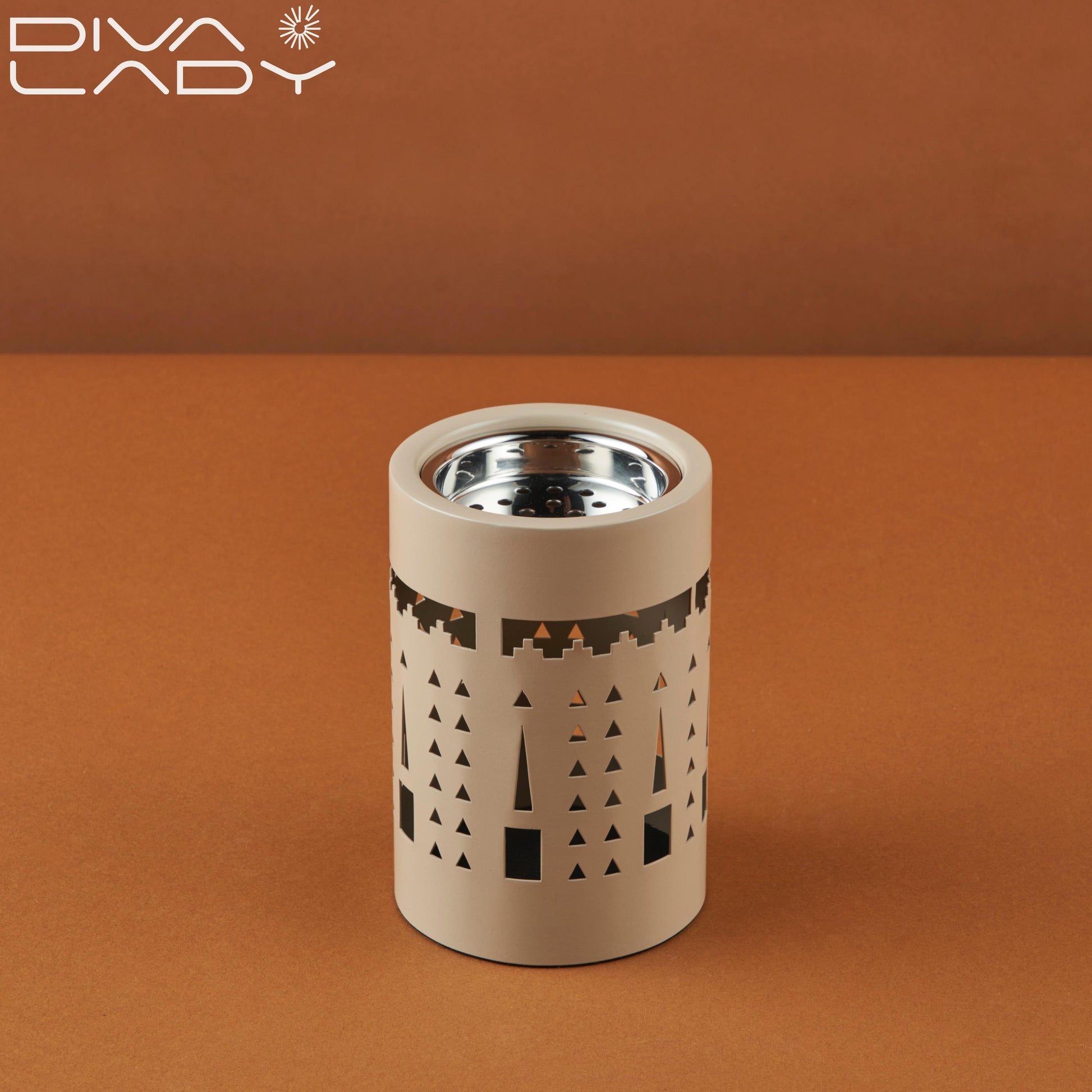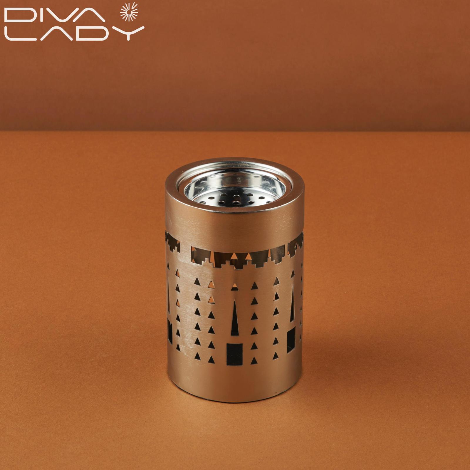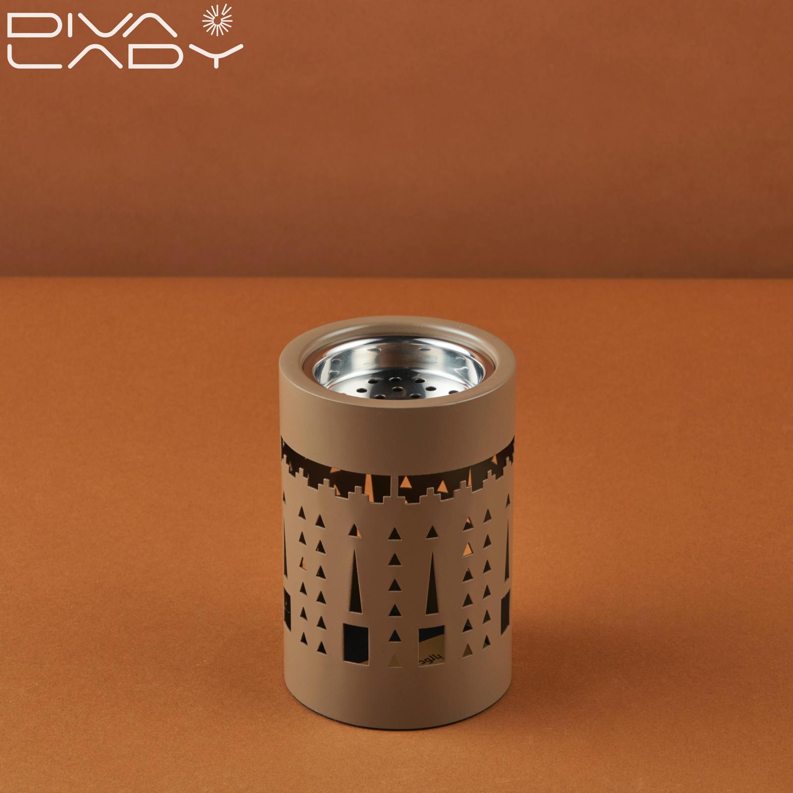 مبخرة عود تصميم معدني عصري يحتوي علي فتحات زغرفية لتوزيع الرائحة بشكل متساوي لاضفاء رائحة جميلة فالمنزل والاماكن المغلقة