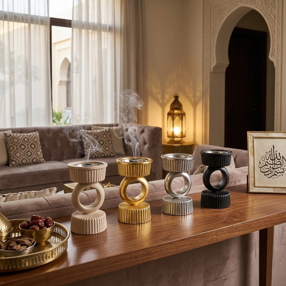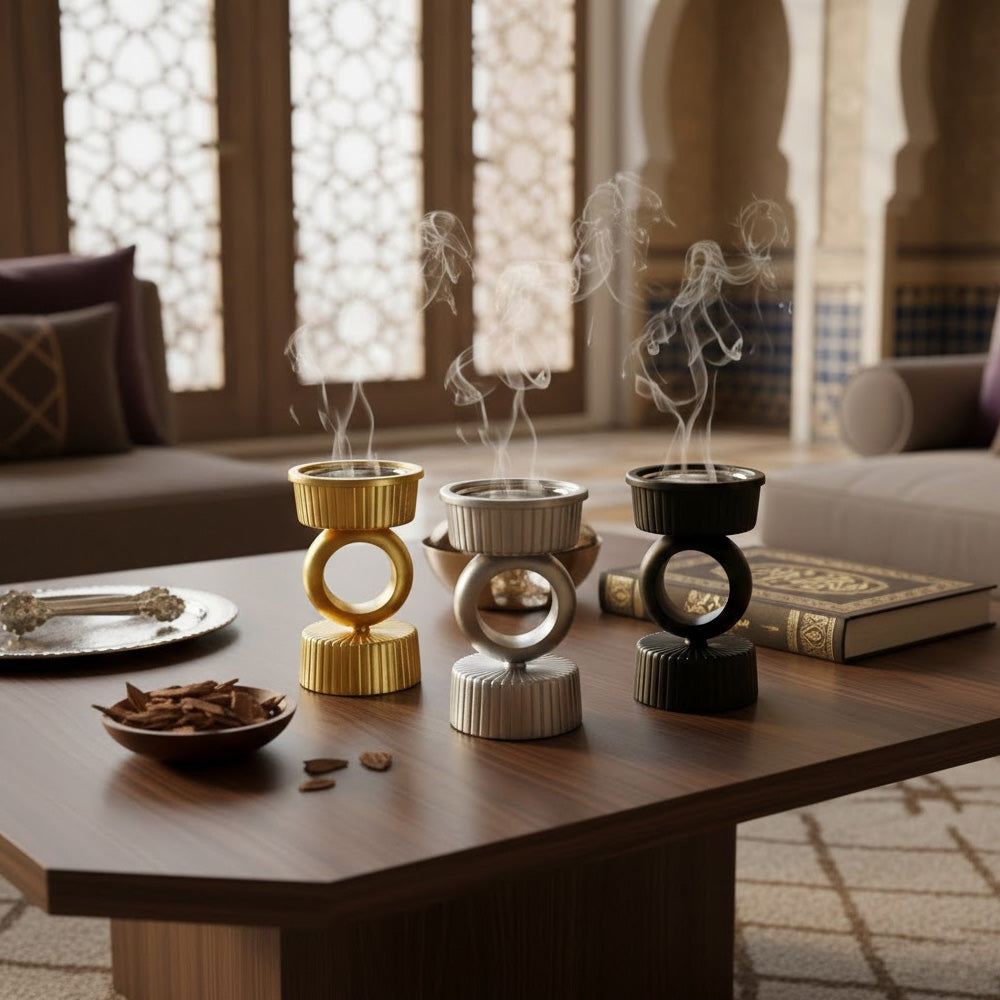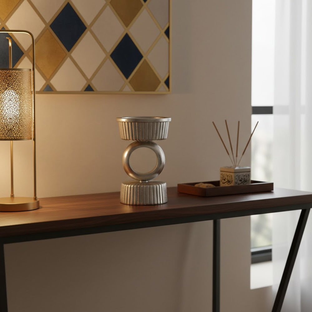 أضف لمسة من الرقي إلى مساحتك مع مبخرة البخور العصرية المصنوعة من الفولاذ، والتي تتميز بتصميمها النحتي اللافت ولمستها النهائية الذهبية الأنيقة. صُنعت هذه المبخرة من معدن متين، ويجمع تصميمها بين الهندسة المتوازنة والأناقة العصرية، مما يجعلها حاملة بخور عملية وقطعة ديكور مميزة في آن واحد.