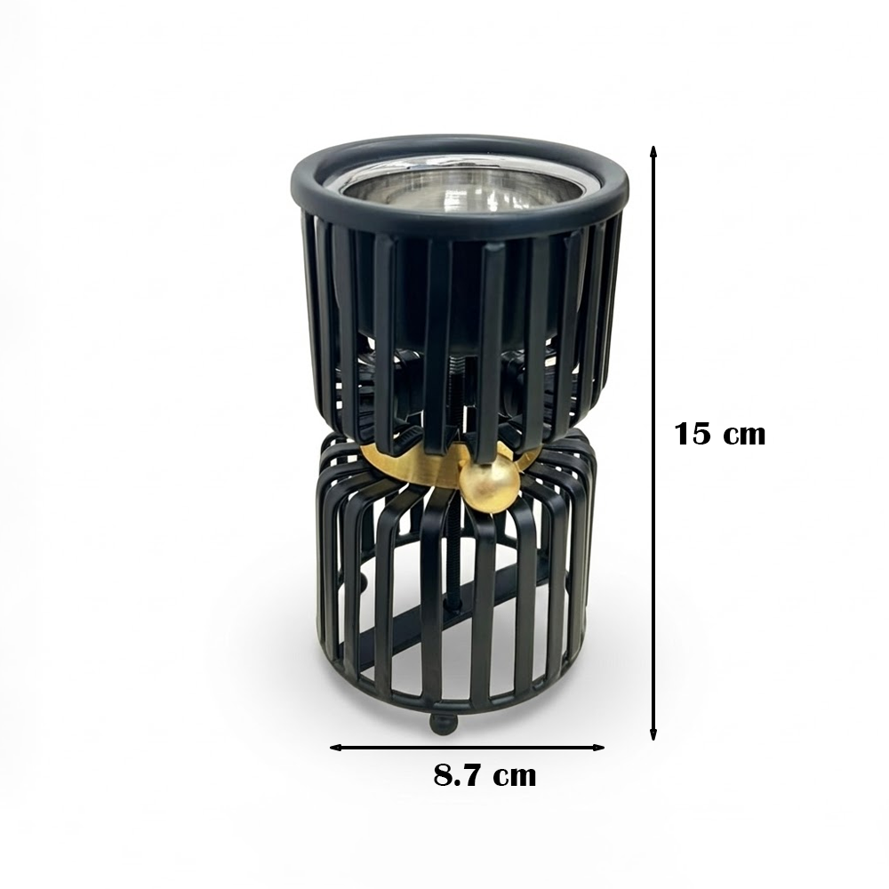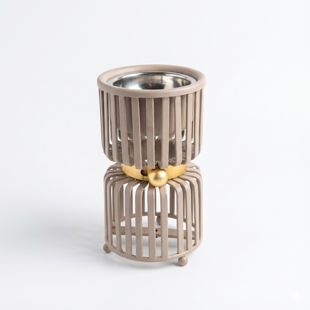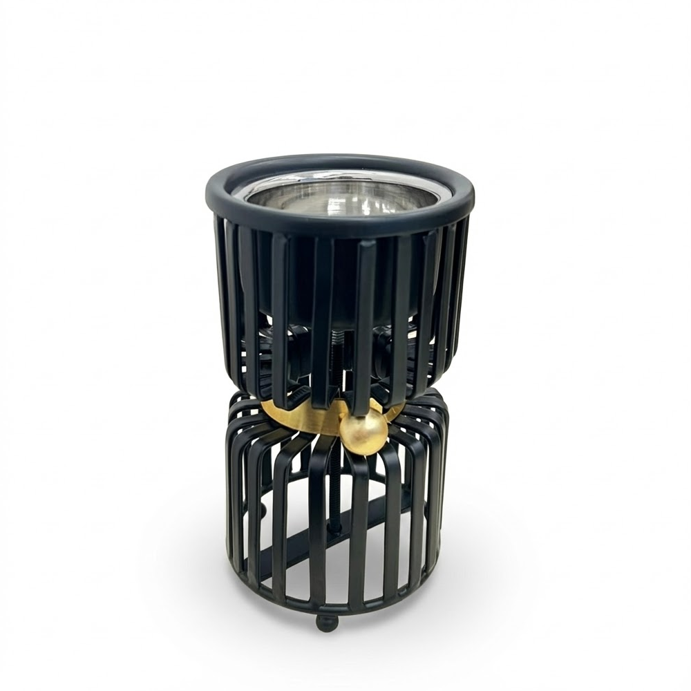 ارتقِ بتجربة التعطير المنزلي مع مبخر "لافي" الذي يجسد الأناقة والابتكار في آن واحد. يتميز هذا المبخر بتصميم فريد يتكون من طبقتين من القضبان المعدنية الأنيقة، يتوسطهما حزام ذهبي مزين بكرة معدنية تضفي لمسة من الرقي والتميز. صُمم هذا المنتج ليكون تحفة فنية تزين طاولات الاستقبال وغرف النوم ومكاتب العمل.
