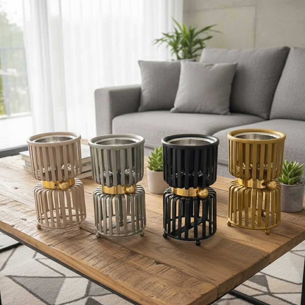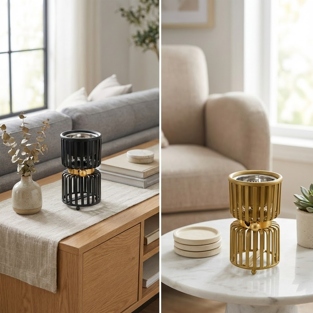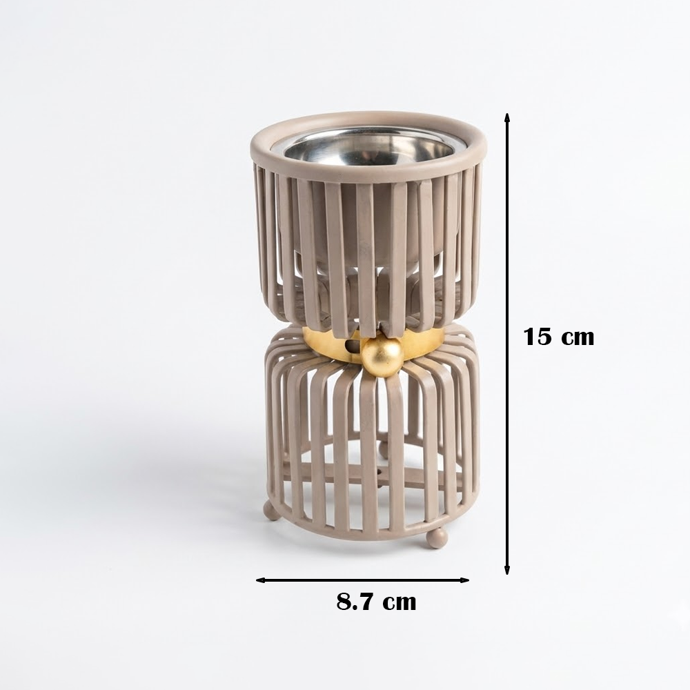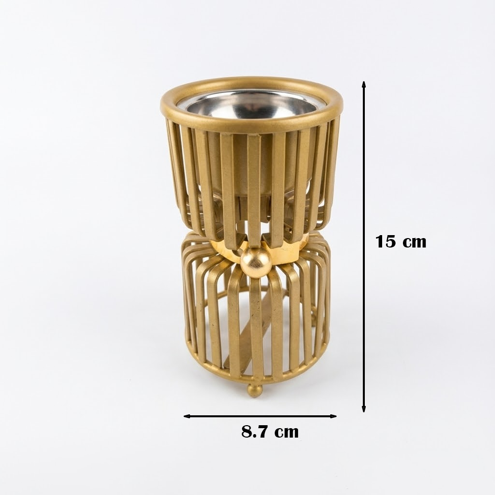 ارتقِ بتجربة التعطير المنزلي مع مبخر "لافي" الذي يجسد الأناقة والابتكار في آن واحد. يتميز هذا المبخر بتصميم فريد يتكون من طبقتين من القضبان المعدنية الأنيقة، يتوسطهما حزام ذهبي مزين بكرة معدنية تضفي لمسة من الرقي والتميز. صُمم هذا المنتج ليكون تحفة فنية تزين طاولات الاستقبال وغرف النوم ومكاتب العمل.