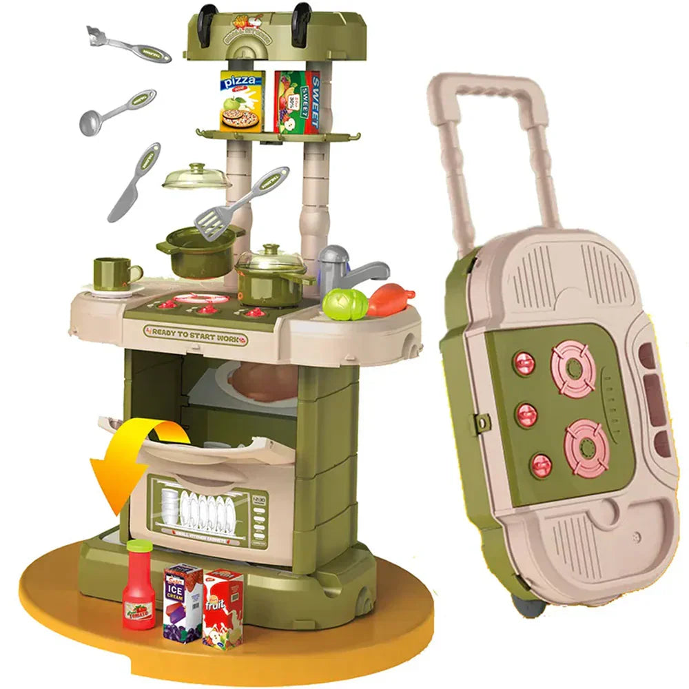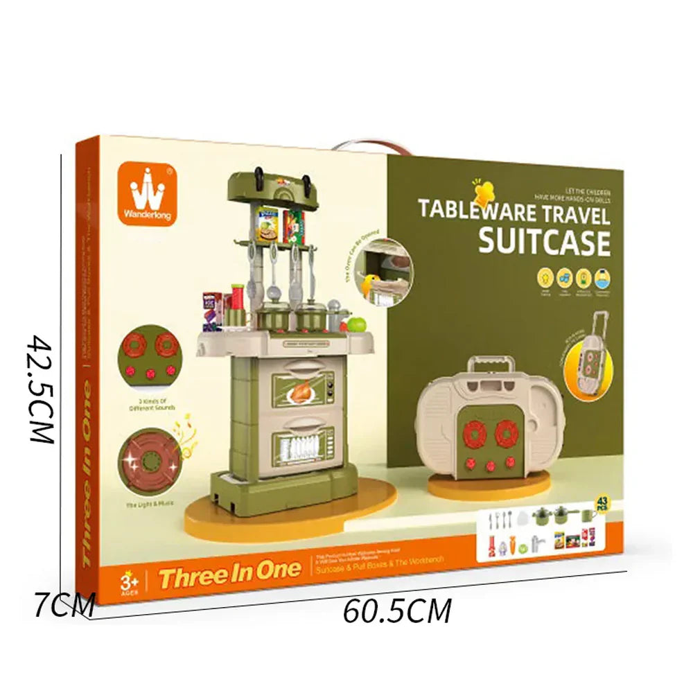 مجموعة أدوات مطبخ مكونة من 43 قطعة، ألعاب أدوات مائدة بلاستيكية محمولة 3 في 1