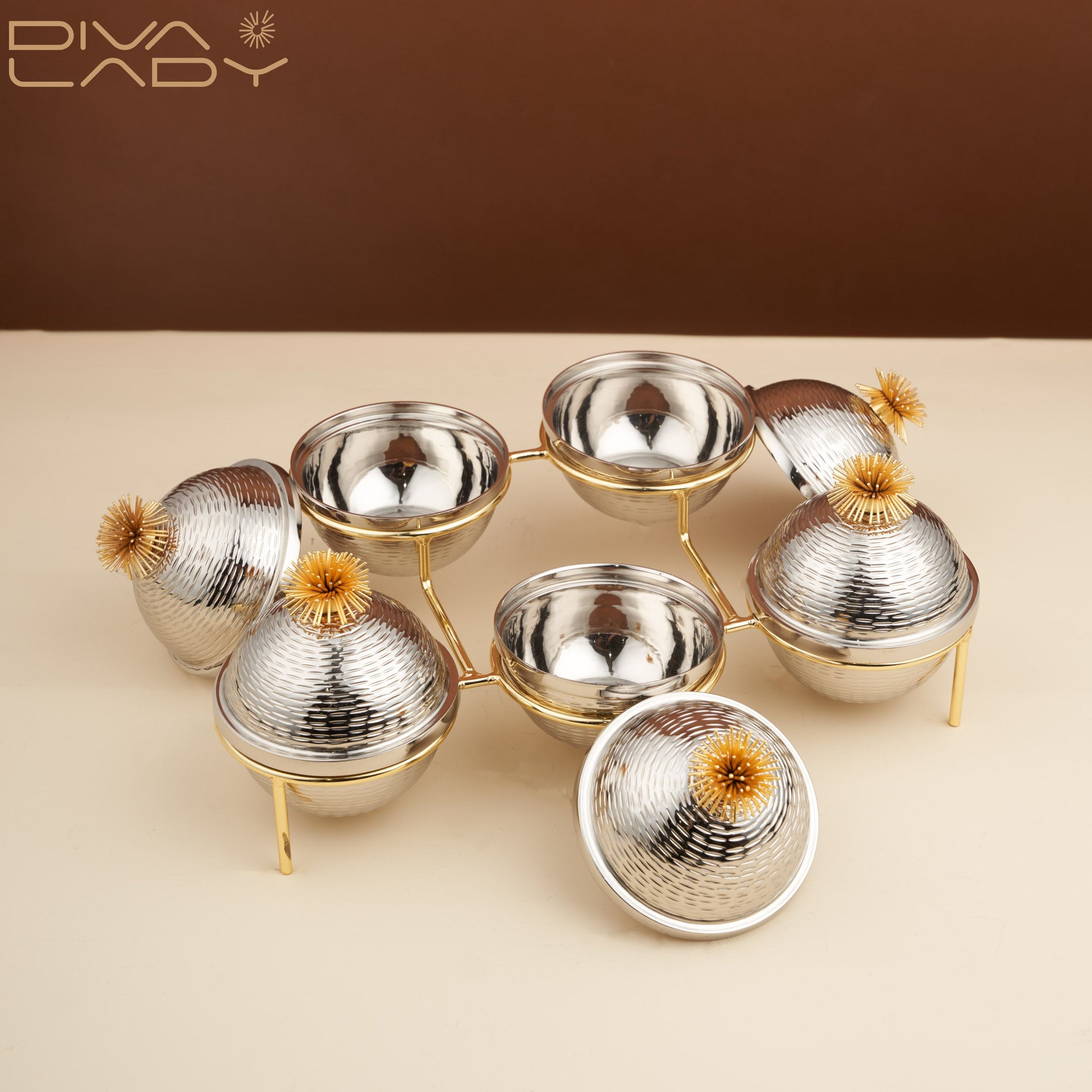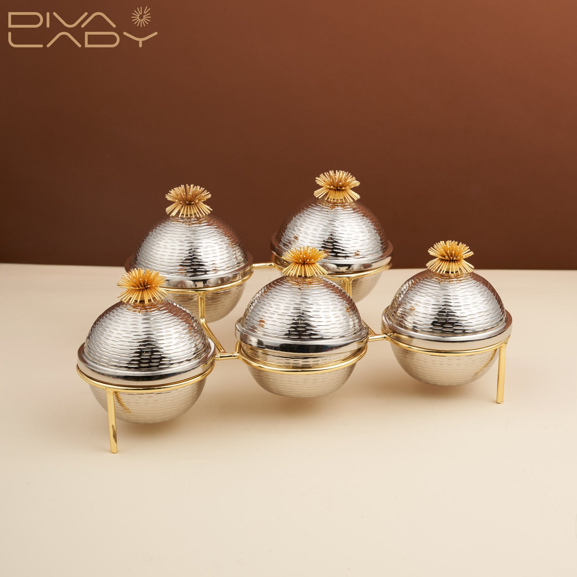يتكون من 5 اطباق فضية مع استاند ذهبى