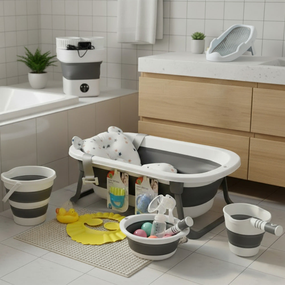 مجموعة أحواض استحمام الأطفال القابلة للطي (10 قطع) هي الحل الأمثل للآباء والأمهات العصريين الذين يُقدّرون السلامة والراحة والعملية. تتميز بحوض استحمام ذكي يستشعر درجة الحرارة وشاشة رقمية، مما يضمن بقاء ماء استحمام طفلكِ دائمًا بدرجة الحرارة المثالية. تصميم الحوض القابل للطي يوفر المساحة ويسهل تخزينه أو حمله.