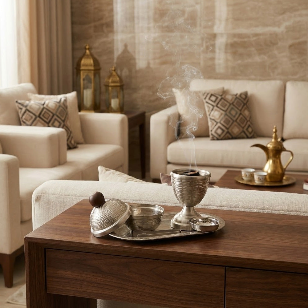 صُنع هذا الطقم من الفولاذ المتين ذي الملمس المطروق الأنيق، ليمنحك مظهرًا خالدًا يناسب أماكن الصلاة المنزلية، وغرف التأمل، والمجالس، كما يُعد هدية مثالية. تحافظ الصينية المتينة على جميع القطع مرتبة ومنظمة، وتحمي الأسطح من الرماد والحرارة.