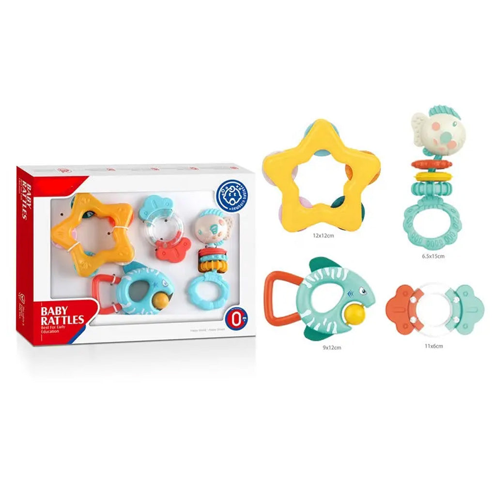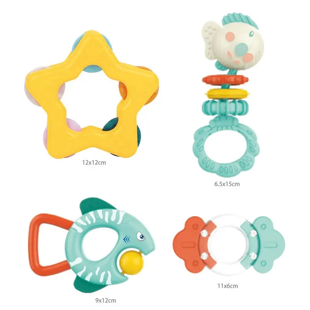 مجموعة من 4 قطع من ألعاب خشخيشة وأسنان للأطفال