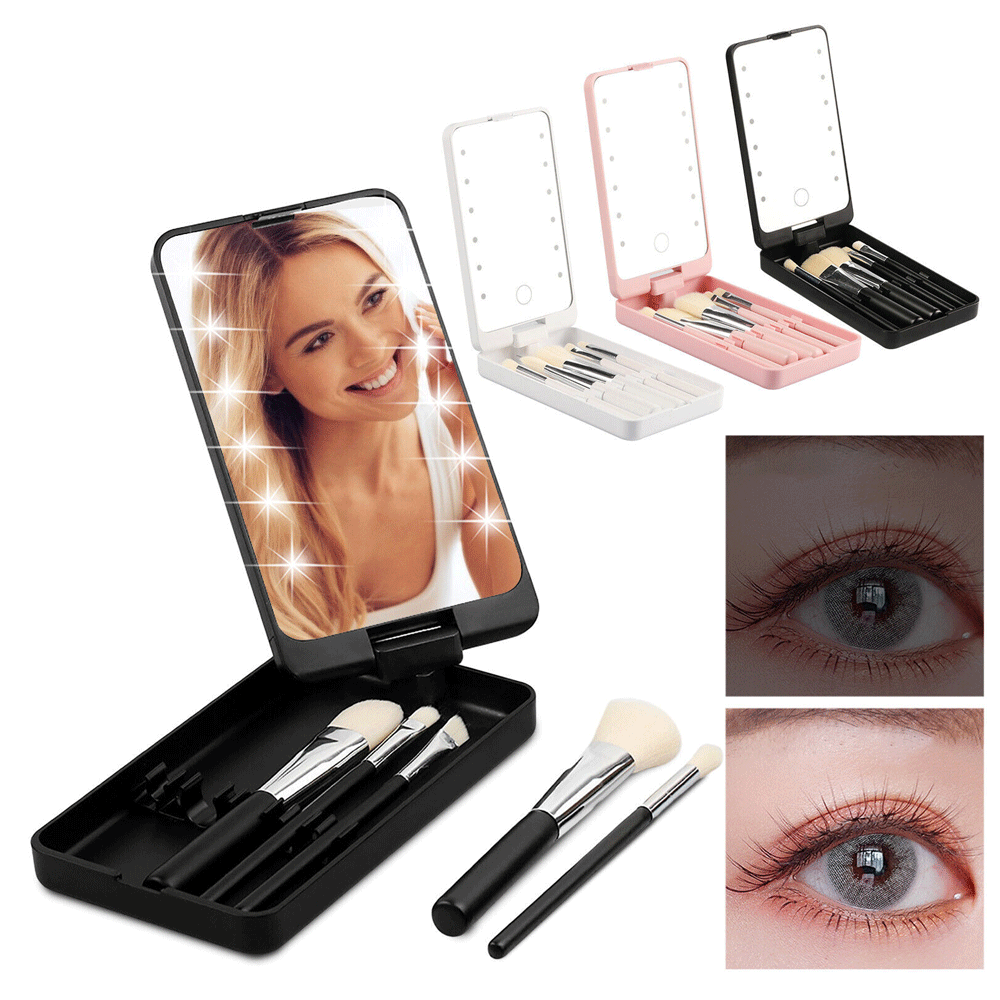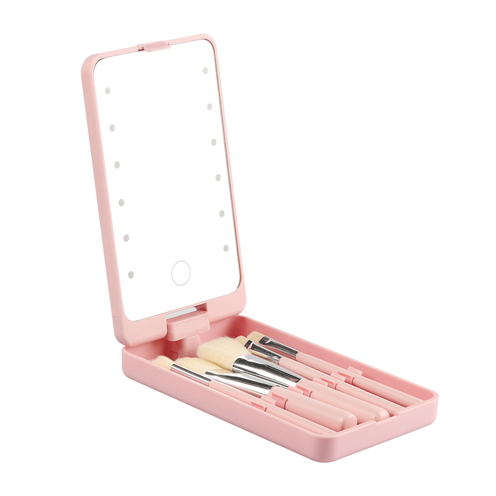 مرآة تجميل محمولة بإضاءة LED مع 5 فرش