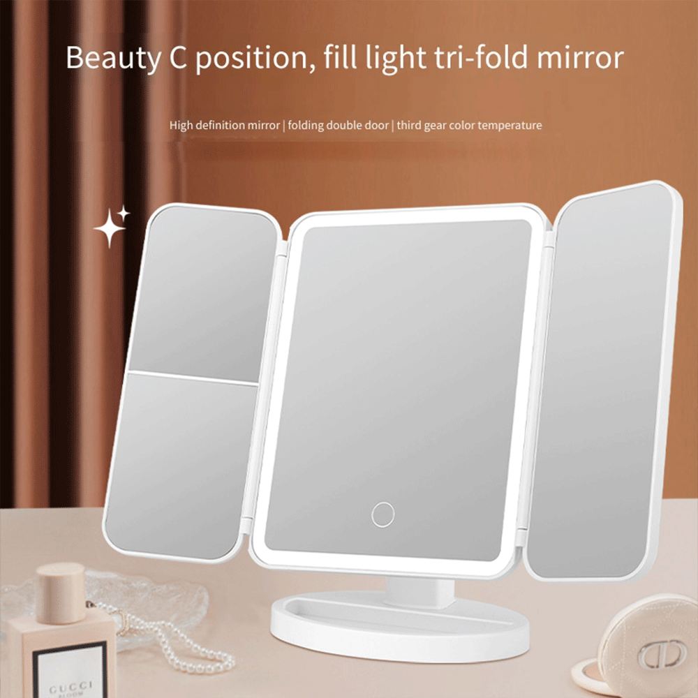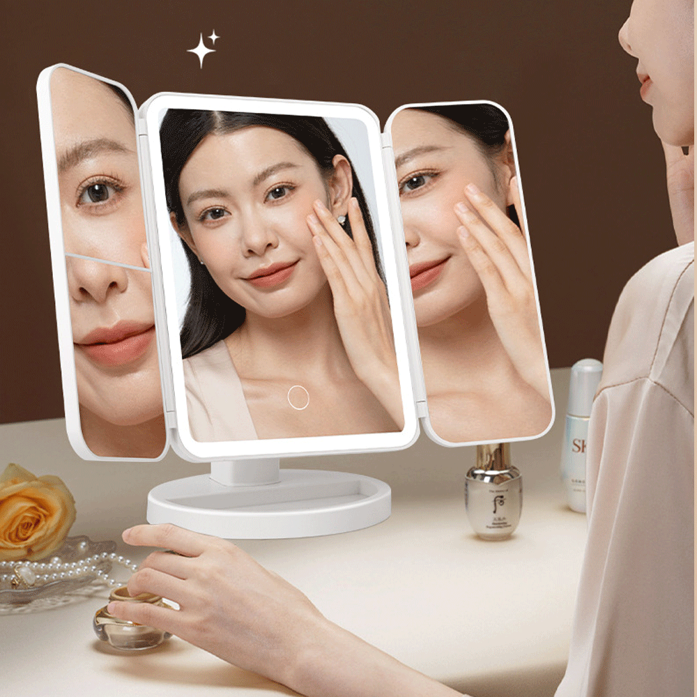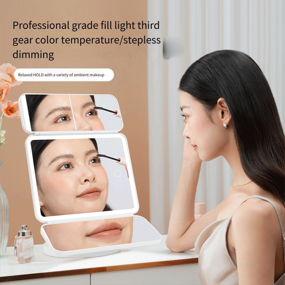 مرآة LED مع مكبرة ثلاثي الطي قابلة للشحن